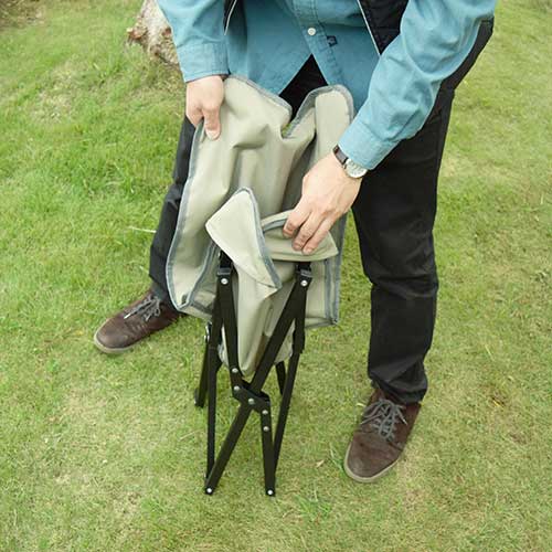 フレームを広げて座面をかぶせるだけで簡単に組み立てられます。