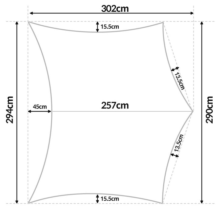 ●過度なテンションがかかると(耐久性に優れた生地ですが、一般的なキャンプ用タープとは異なり、軽量で薄いため)破れたり、縫製がほつれる可能性があります。