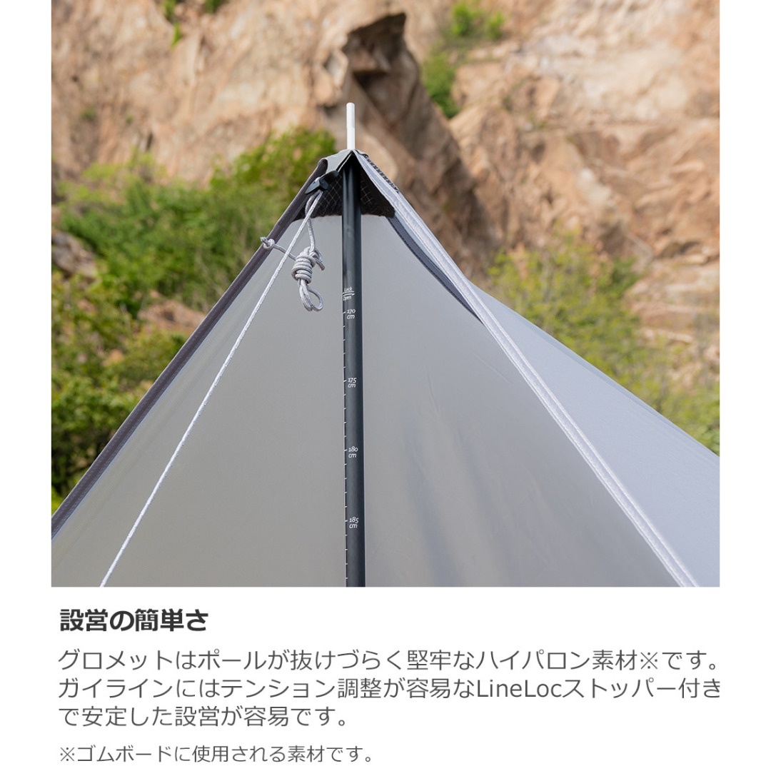高い耐候性も加わり、 バックパッカーのギアリストに、さらなる軽快さと居住性をプラスします。
