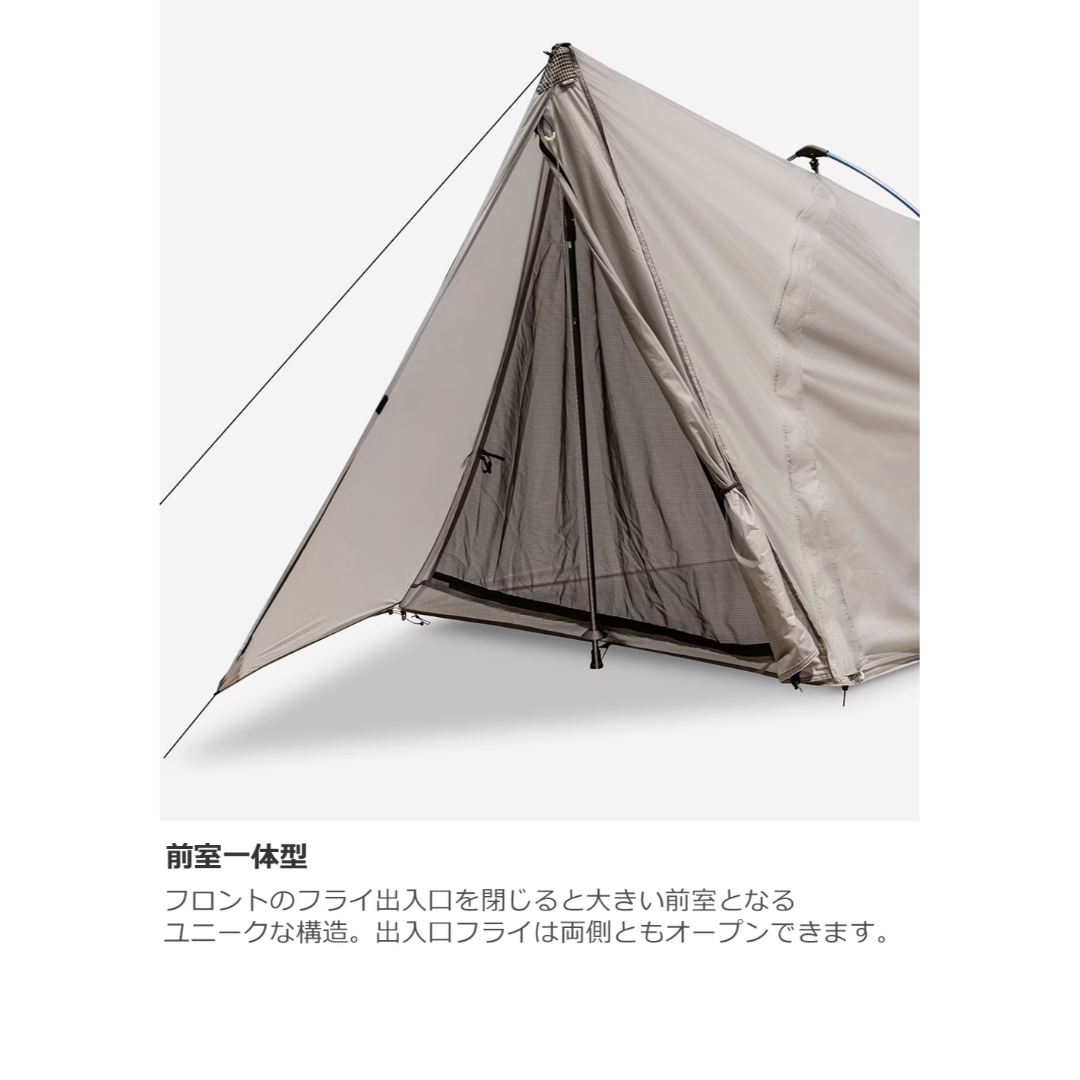 テントのような居住性と安定性、前室一体型トレッキングポールシェルター(日本限定)
