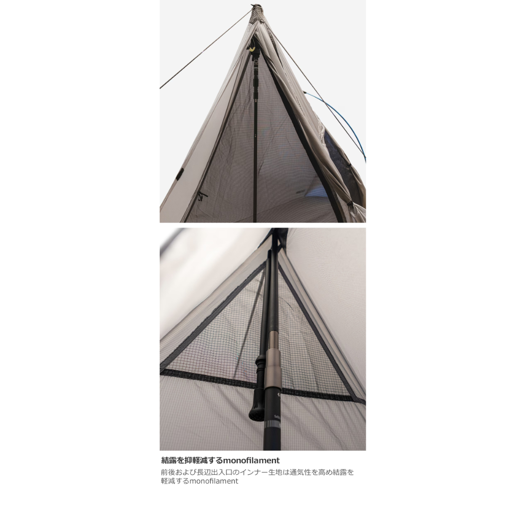 「Beyond Trekkingpole Shleter」をコンセプトに、日本の山岳環境と高湿度への対策を施しました。
