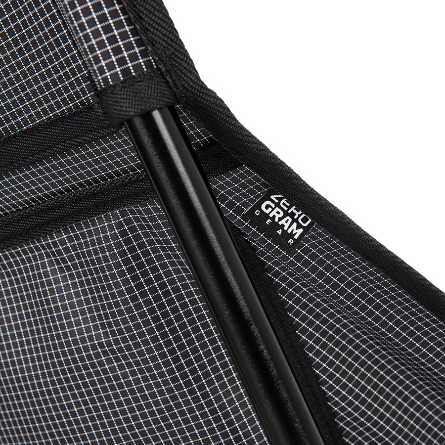 「BROOKS GROUND CHAIR」はスキンの背面が広くゆったりとした座り心地です。脚の横フレームが二重で安定感もあります。 脚のフレームは軽量アルミニウム合金と強化プラスチックハブで作られた高強度の軽量ポールです。 またスキンに再生ナイロン素材を使用することで、化学原料使用量を削減、製造過程に排出されるCO2を減らします。