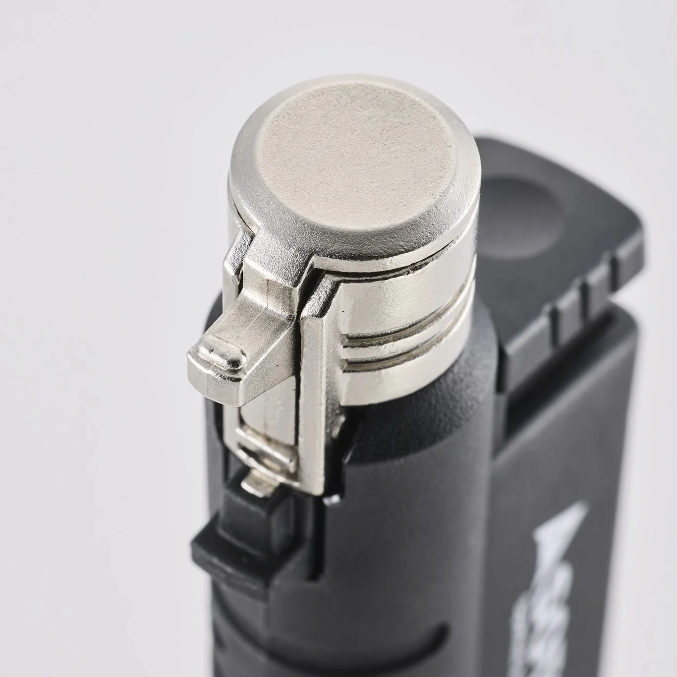 安全のための火口キャップ付。ポケットや荷物の中での誤作動を防ぎます。