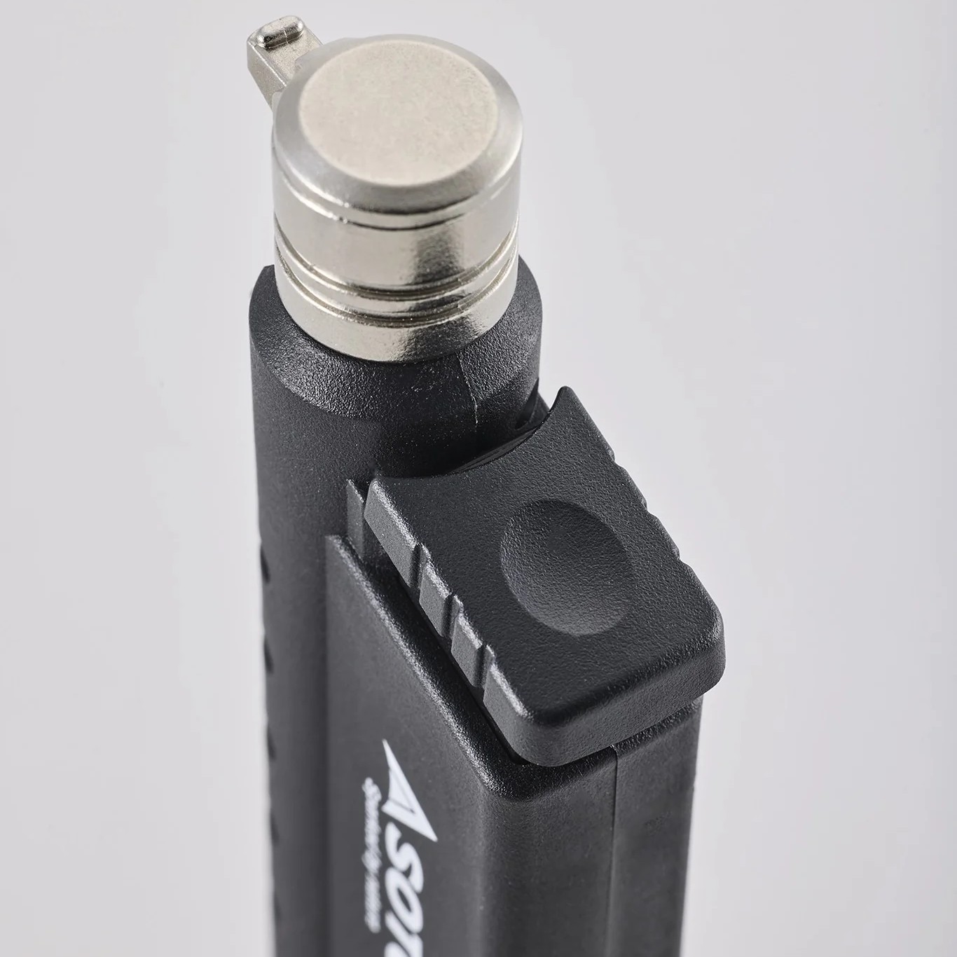 手元から熱源まで距離を十分に確保して着火。約6.8cm伸縮