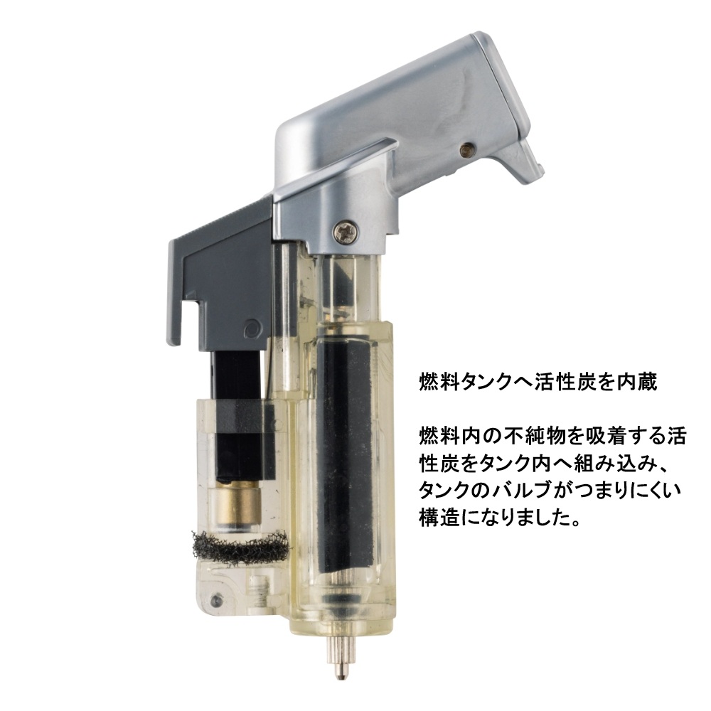 燃料内の不純物を吸着する活性炭をタンク内へ組み込み、タンクのバルブがつまりにくい構造になりました。