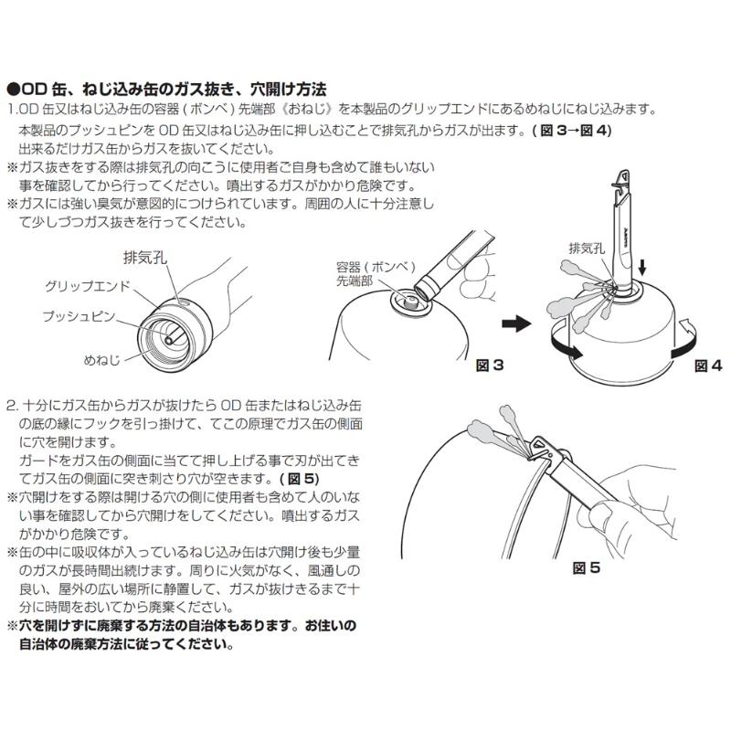 また、穴を開けずにガスを抜くこともできるため、廃棄方法に応じて使い分けが可能です。