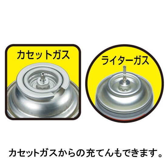 充てんする燃料は経済的なカセットガス。ライター用ガスも使用可能。