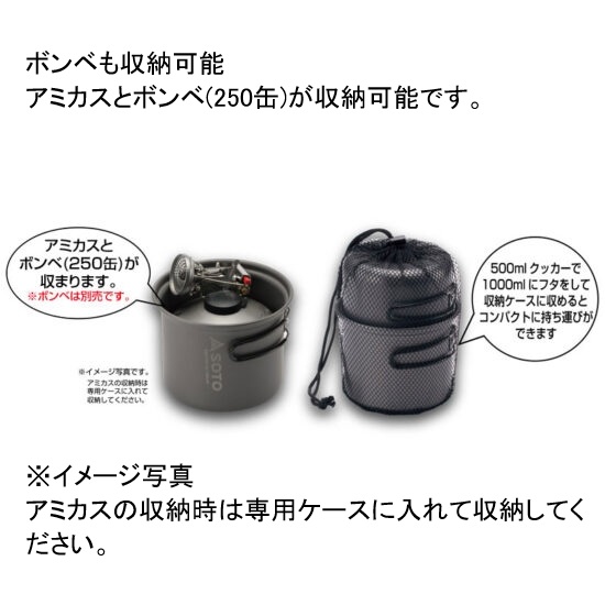 トータルバランスに優れたコンパクトストーブ、SOTOシングルストーブ AMICUS(アミカス)とアルミクッカーのセット。
