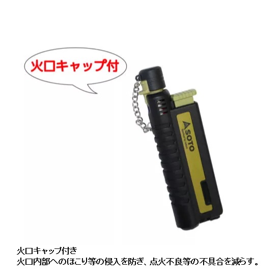 安全のための火口キャップ付。ポケットや荷物の中での誤作動を防ぎます。