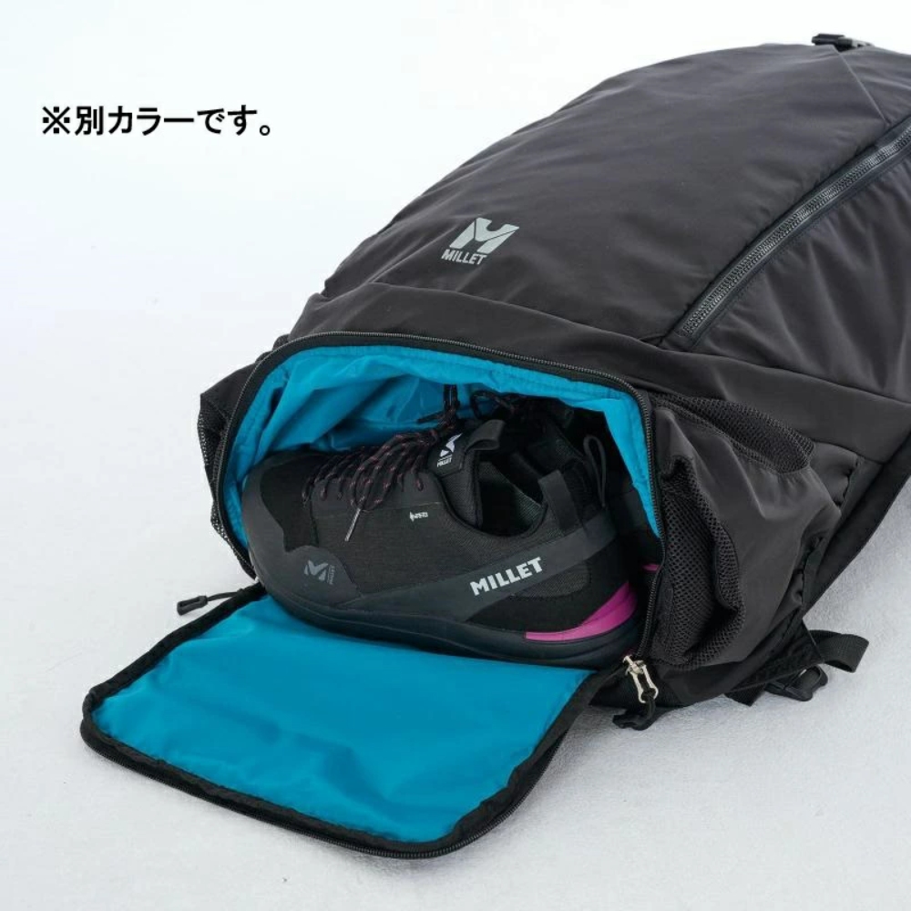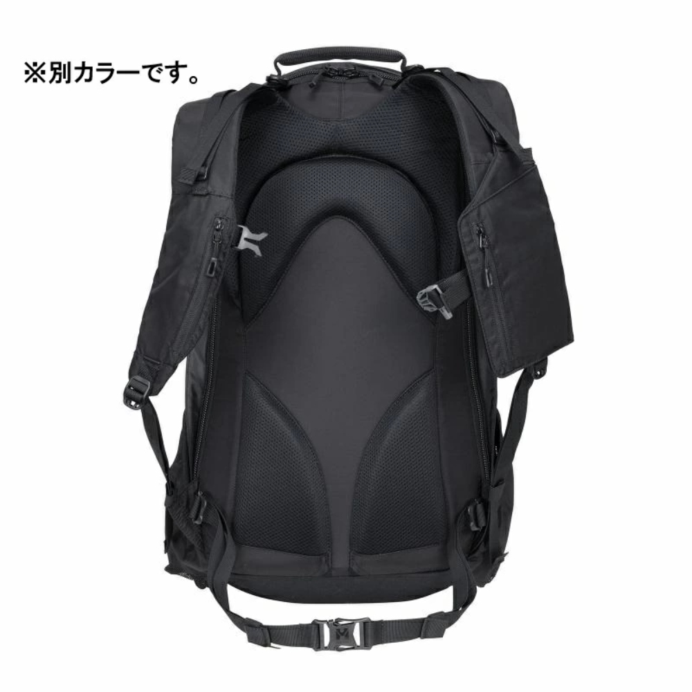 両サイドには大きなボトルやスタッフサックを縦に重ねて収納できる縦長の大型ポケット、ボトムには汚れがつかないように仕切りで分かれたシューズポケットを配置するなど、街からフィールドへのシームレスな移動を意識した収納が豊富に用意されています。