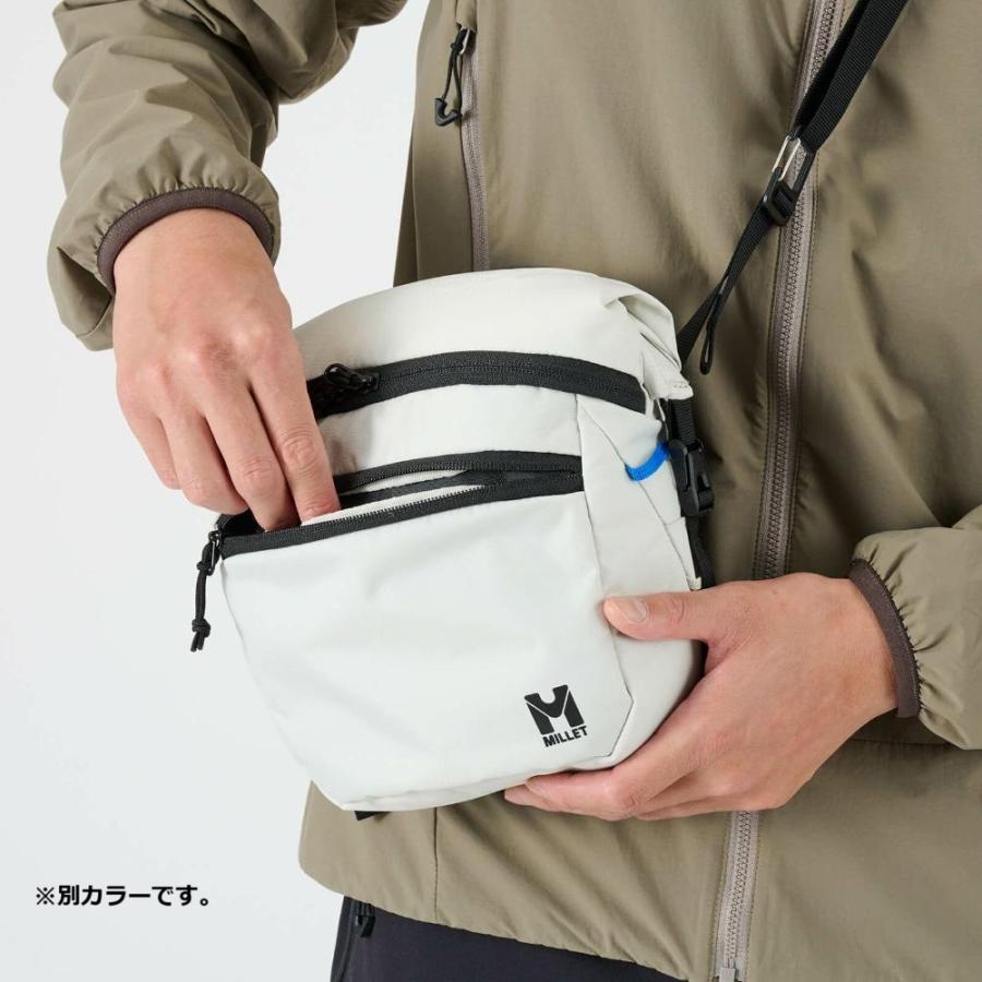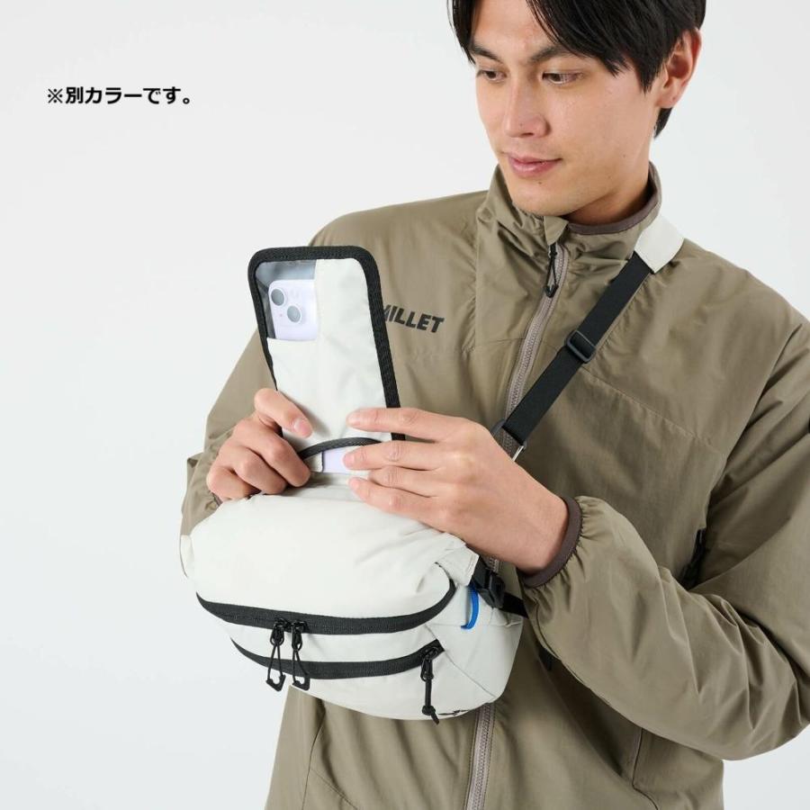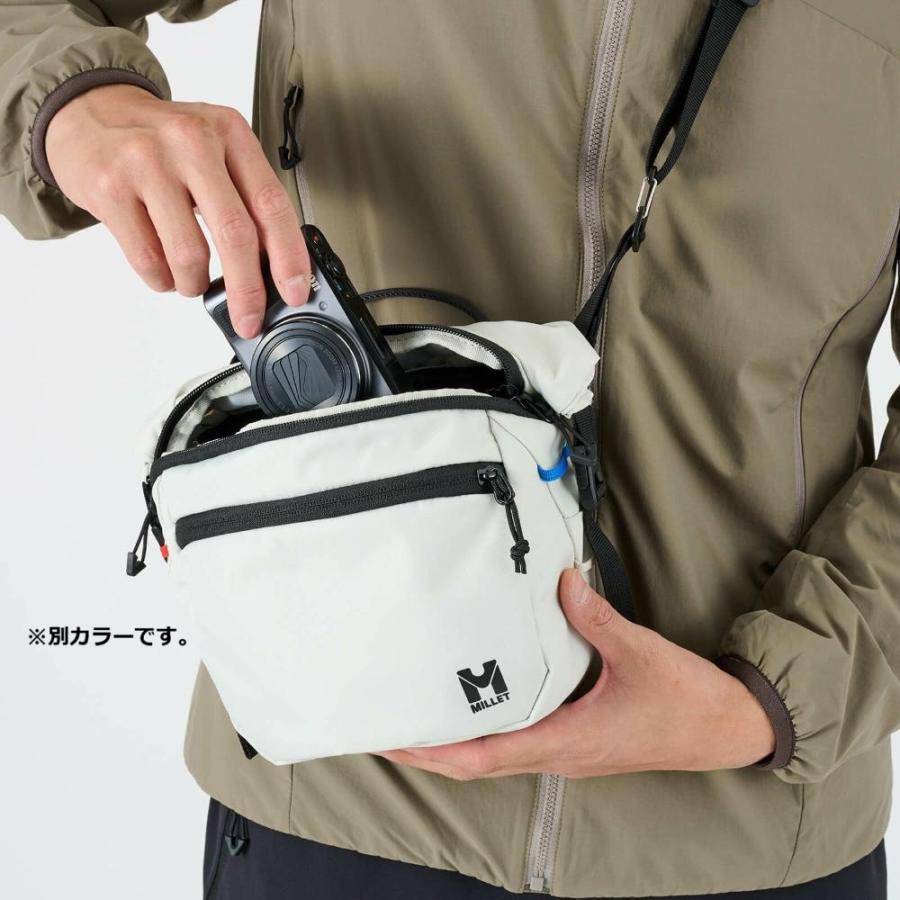 山旅で頻繁に出し入れするアイテムを持ち運ぶのに便利なショルダーポーチ。大きな一眼レフカメラも収納できる拡張可能なロールトップメイン収納は、締めたままでもダブルジッパーで素早く出し入れが可能です。そのほか小物の収納に便利なフロントポケット、収納したままで操作も可能なスマートフォン用背面ポケットなど、旅をしながら使うことを想定した機能的な収納がそろっています。肩掛けの他に、バックパックのDリングに取り付けてフロントポーチ、ウエストベルトに通してウエストポーチとしても使える3way仕様です。