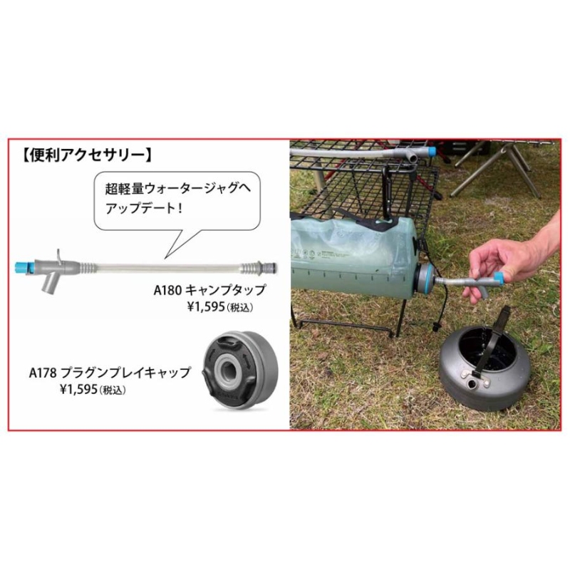 またキャップはループ付なので、キャップを失くしてしまうこともなく安心。使わない時は非常にコンパクトにたためます。42mmのキャップ径はハイドラパック自社の浄水器はもちろん他社の浄水器も採用しているサイズなので、長期間、長時間の使用や非常用の防災装備としても最適です。別売のシーカーハイドレーションキット(A177)を利用すればハイドレーションとしても使えます。 (A178)PLUG-N-PLAYキャップと(A180)キャンプタップを使えばウォータージャグとしても。
