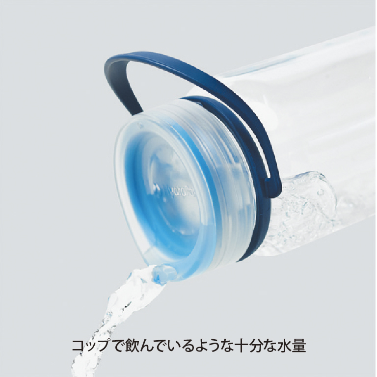 180°回転するツイストキャップは、まるでコップで飲んでいるような十分な水量を提供。簡単に閉めることができ、漏れることもありません。