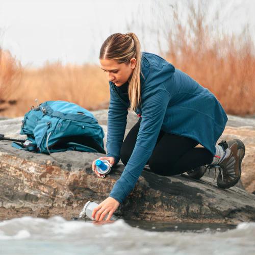 自然環境での川や湖の水をこのフィルターを通して、ろ過し簡単に飲み水を確保することができます。
