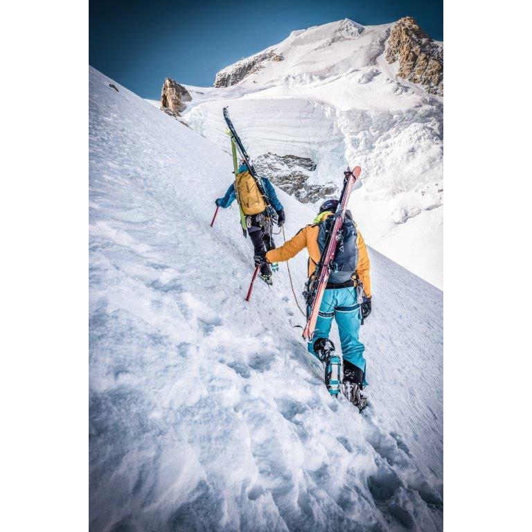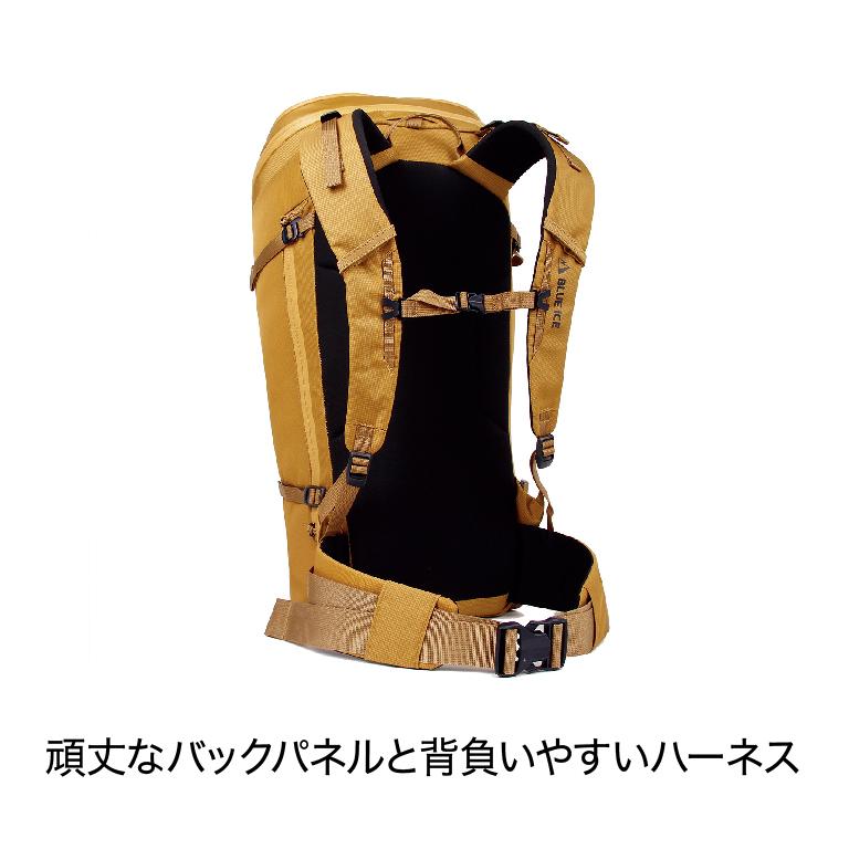 頑丈なバックパネルとキャリーシステムが負荷管理を行い、薄型のハイブリッドショルダーストラップと収納可能なウエストベルトがロープワークやハーネスの邪魔になりません。