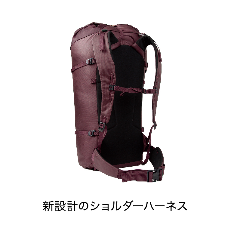 カーボネートコーティングされた生地は雪や氷が着きにくく、従来モデルよりさらに冬季での使用に適しています。パーツ類が取り外せる汎用性の高いパックで、最大100gの軽量化が可能です。