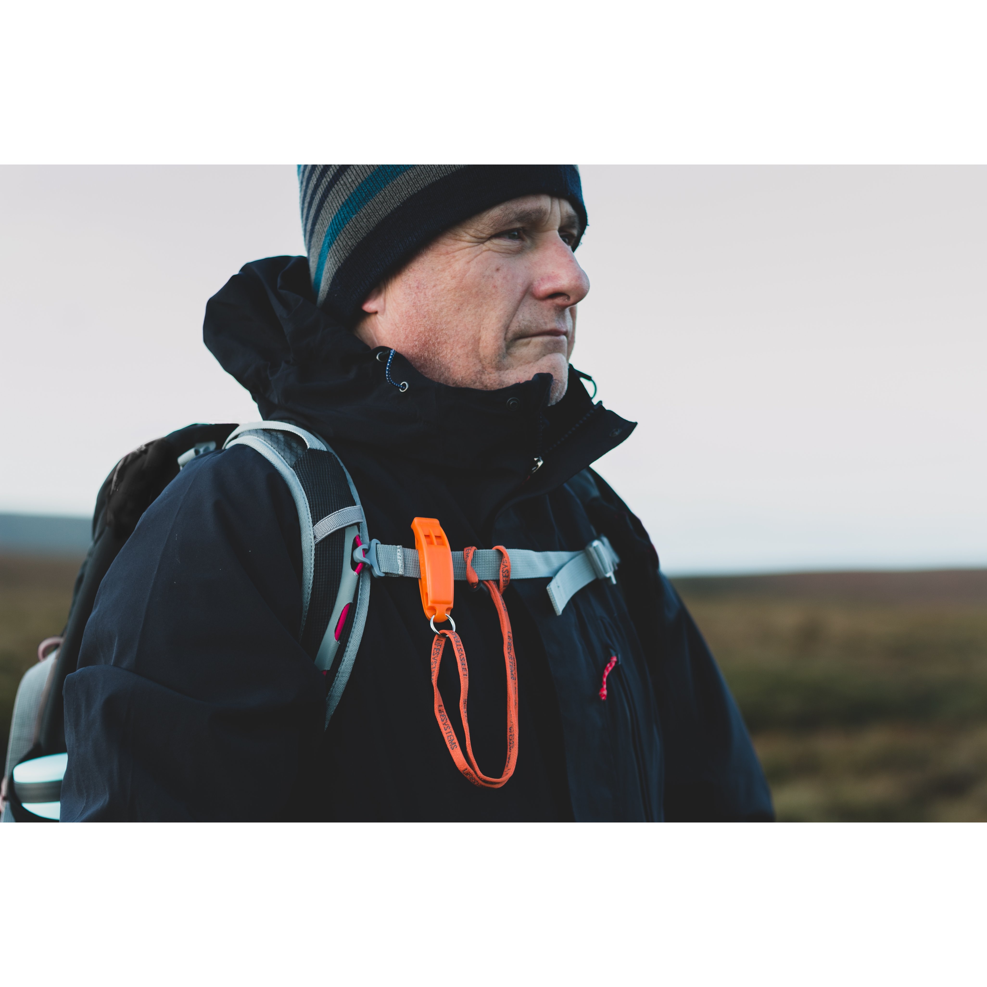 - デュアルトーンで遠くまで音が響く。携行しやすいネックストラップ付。