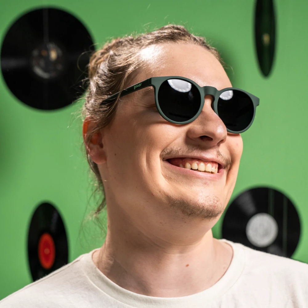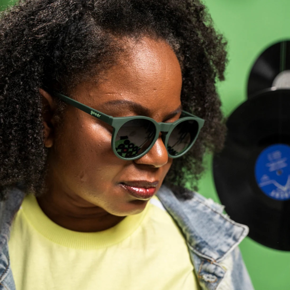 Carl the Flamingo once tried to market a portable record player that you could strap to your arm to play your favorite vinyl while you run. He called it a WINGMAN. (If you're an eagle-eyed hipster creeper you may have peeped the prototype once upon a time!!!) Carl insists that vinyl is the superior format for everything, which is why he designed these slick I Have These on Vinyl, Too sunnies. According to Carl, even these sound better on vinyl too.