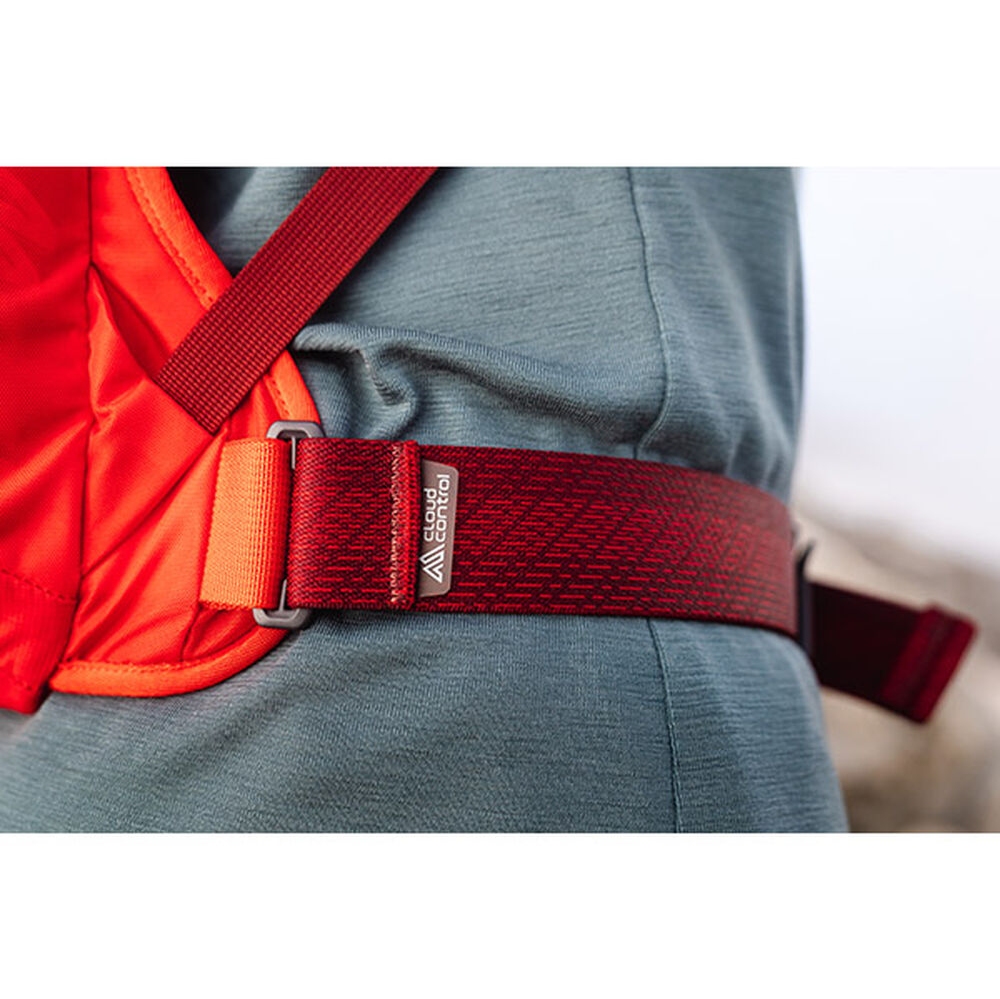 ・クラウドコントロールのヒップベルトは、体に合わせて柔軟に伸縮し、程よいテンションにより安定したサポートを提供します