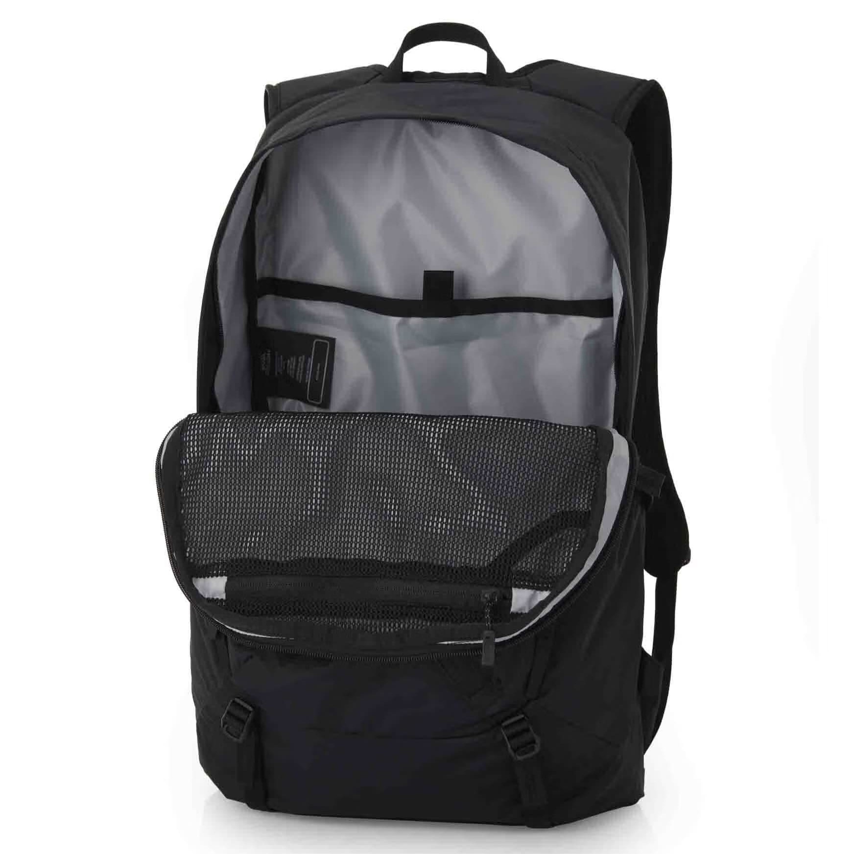斜めに配置された大型のフロントジッパーポケットとメインコンパートメントは、PCや書類、着替え、ガジェット類などをしっかり収納できる頼れる容量を備えています。