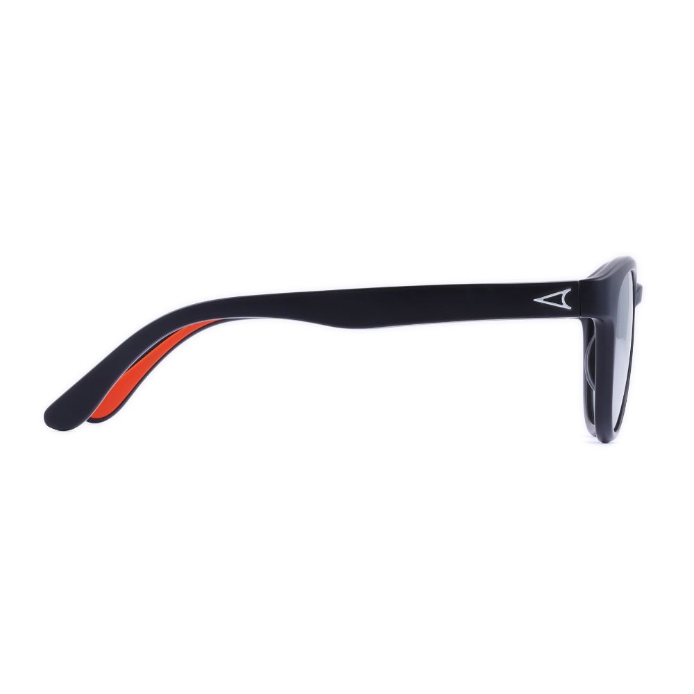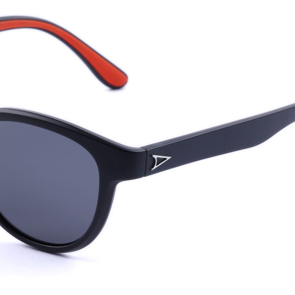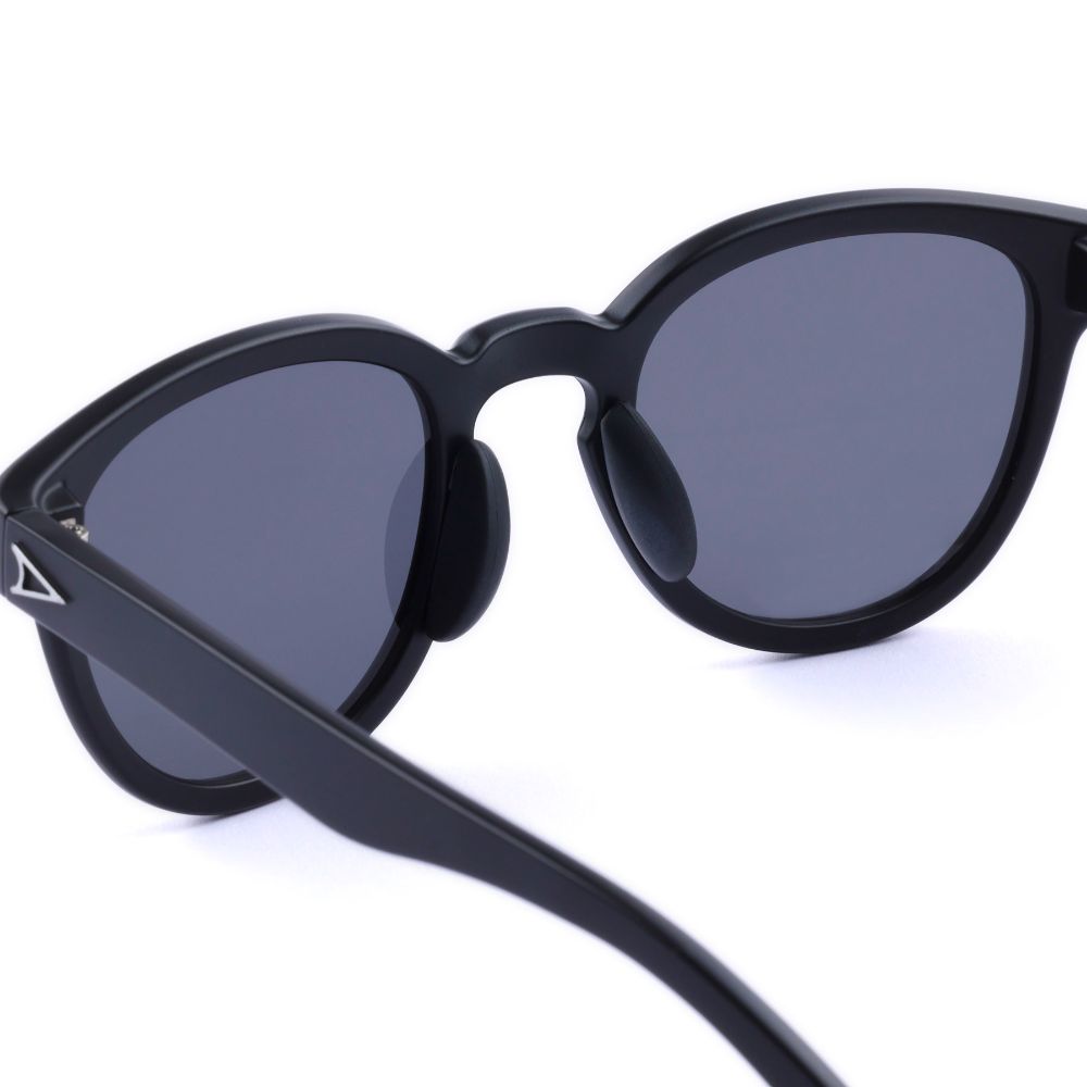 フレームはマットブラック、レンズは強い日差しでも眩しさを軽減するグレー。