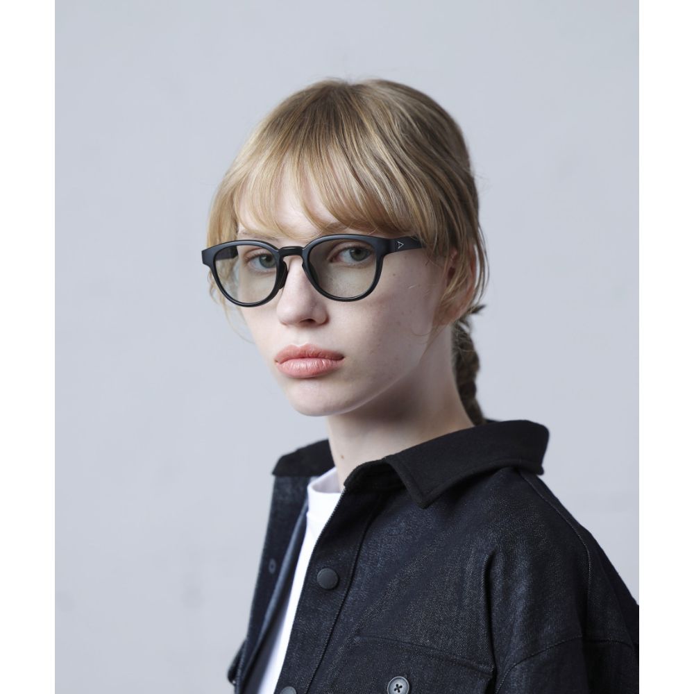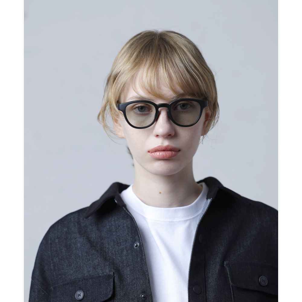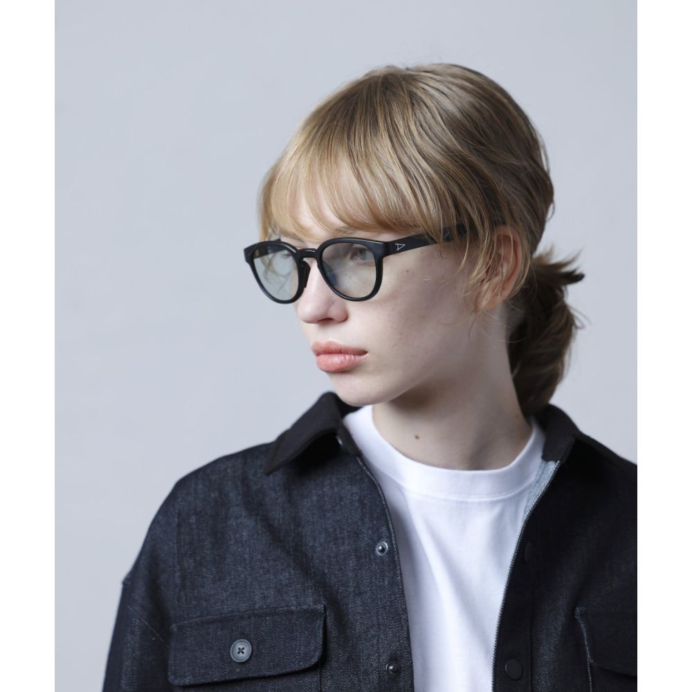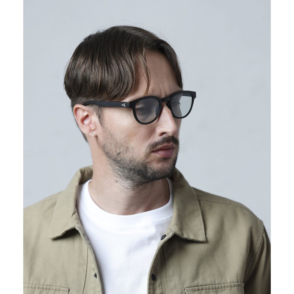 フレームはマットブラック、レンズは紫外線量により明るさが変わる調光レンズ。