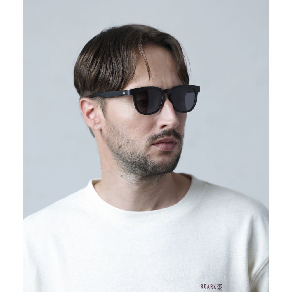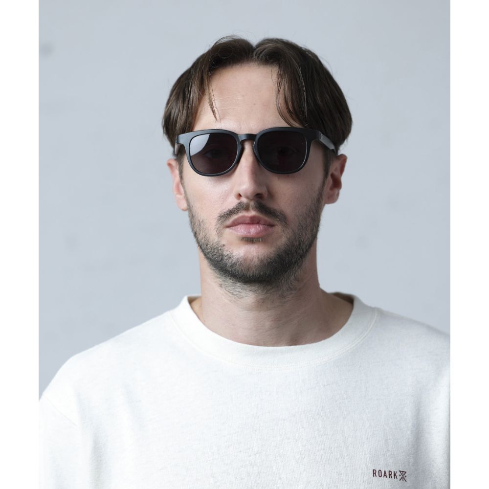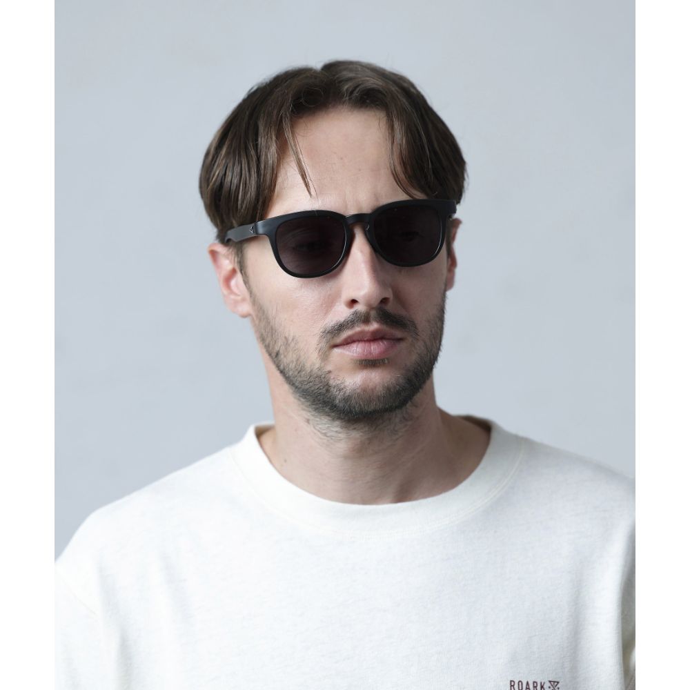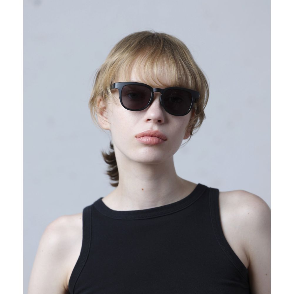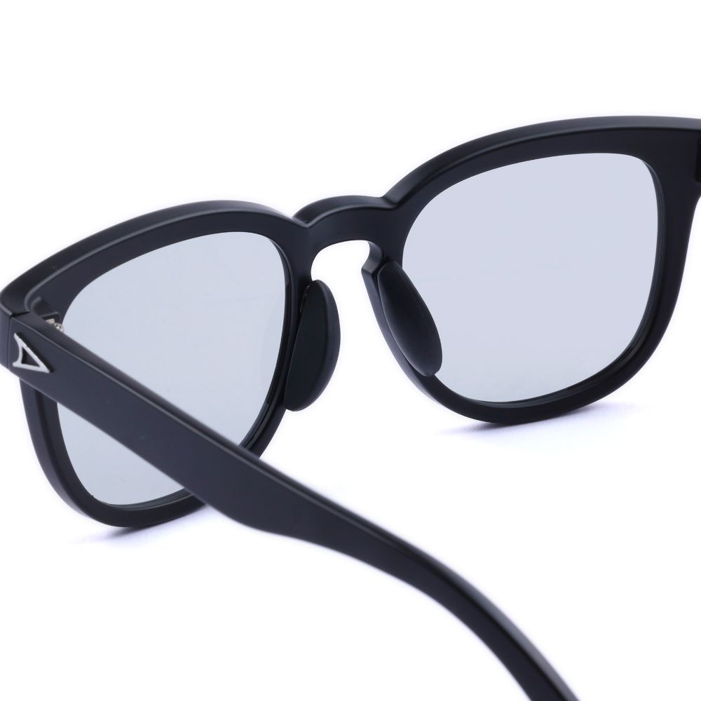 フレームはマットブラック、レンズは紫外線量により明るさが変わる調光レンズ。