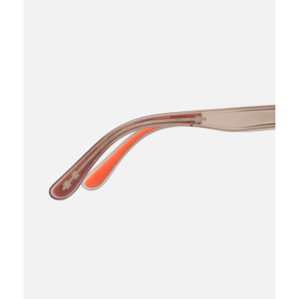 フレームはマットクリアグレー、レンズは紫外線量により明るさが変わる調光レンズ。