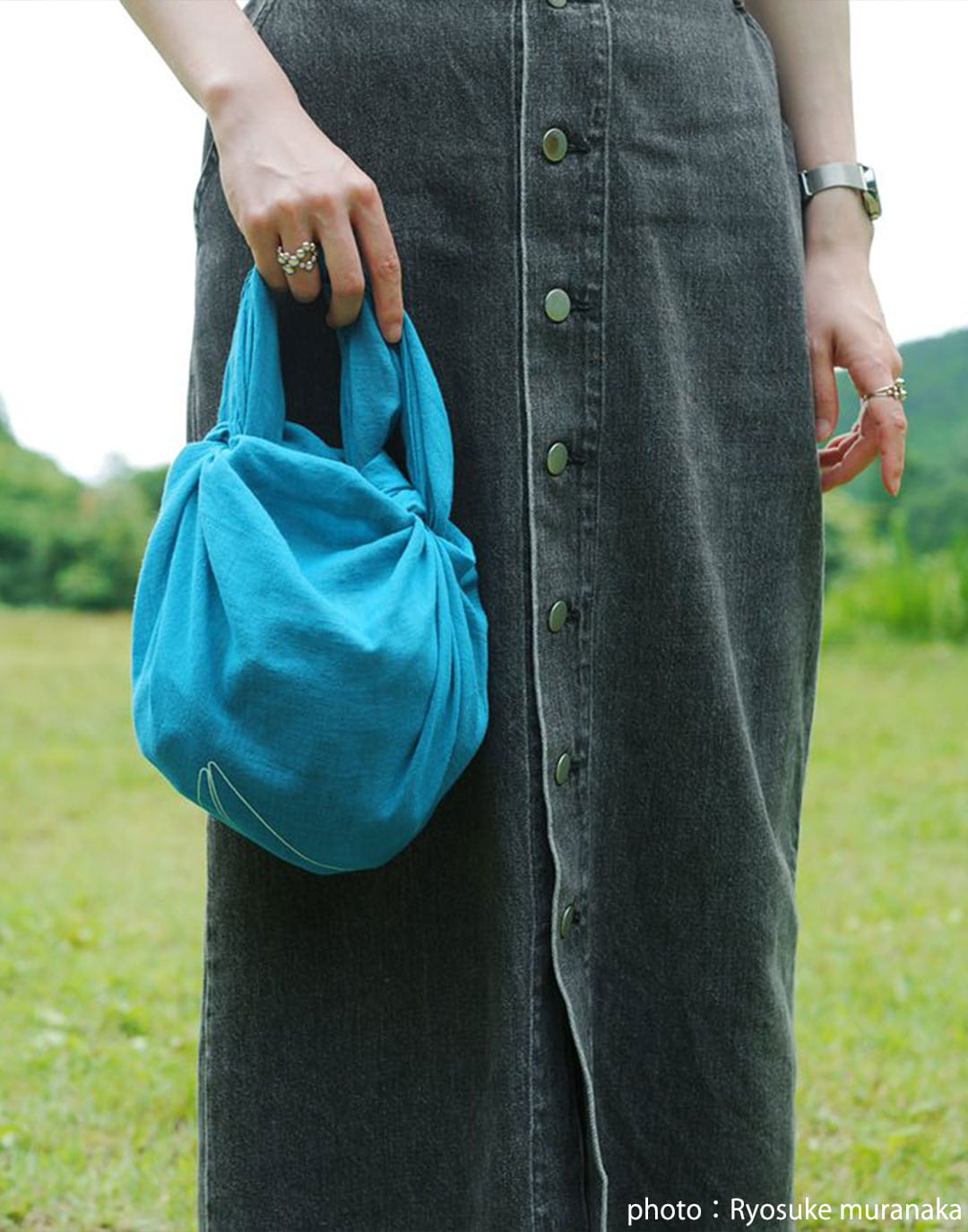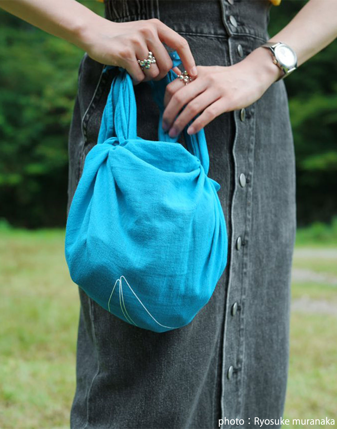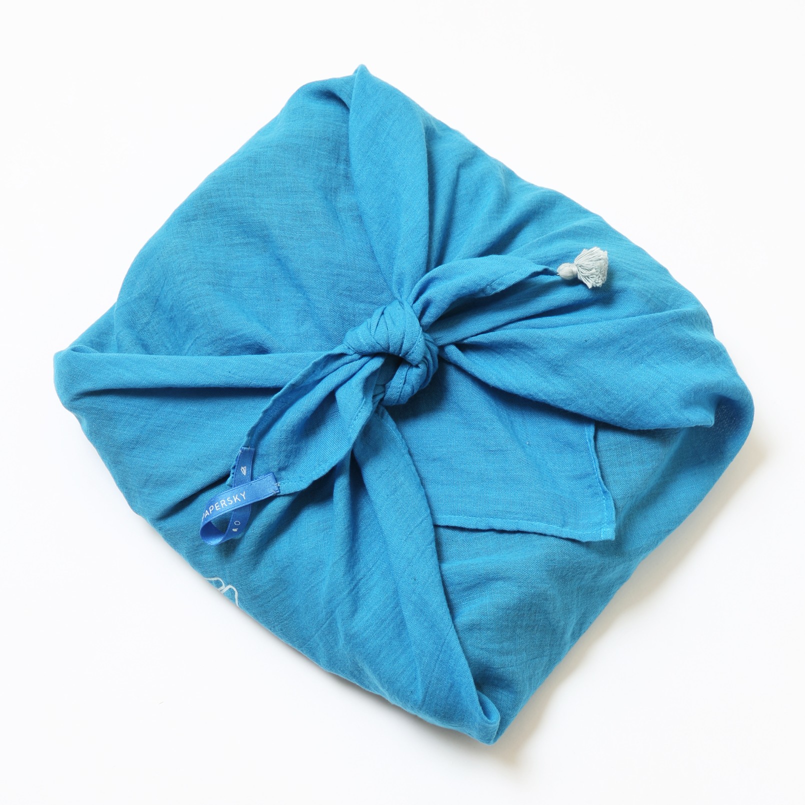 ao × PAPERSKYによる、天色(そらいろ)に染め上げた一重ガーゼのふろしき。