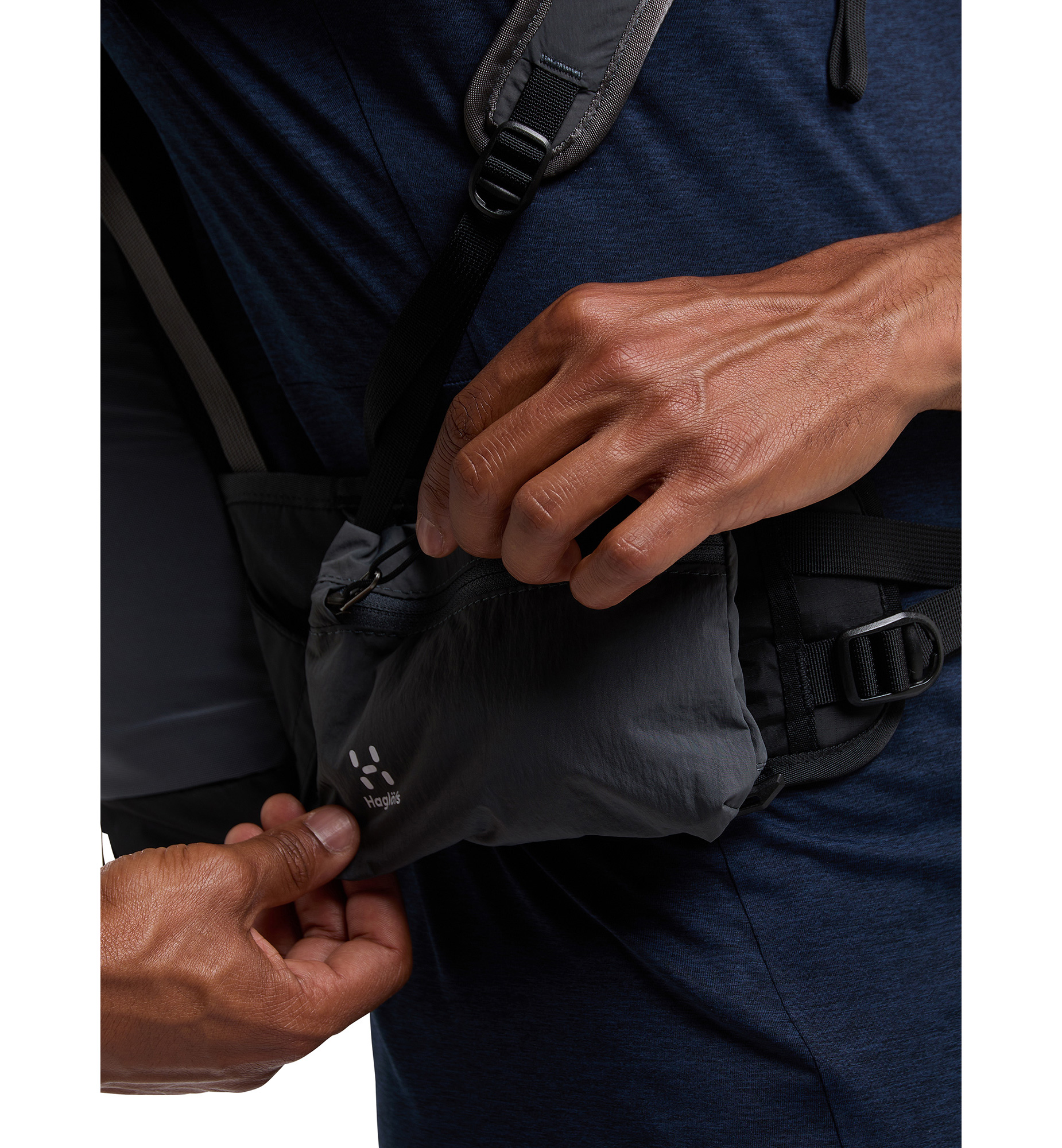 ショルダーハーネスに2つのストレッチポケット、ウエストハーネスに取り外し可能なウエストポケットを装備し、行動食や飲み物、小物をすぐ手に届くところに置いておけます。