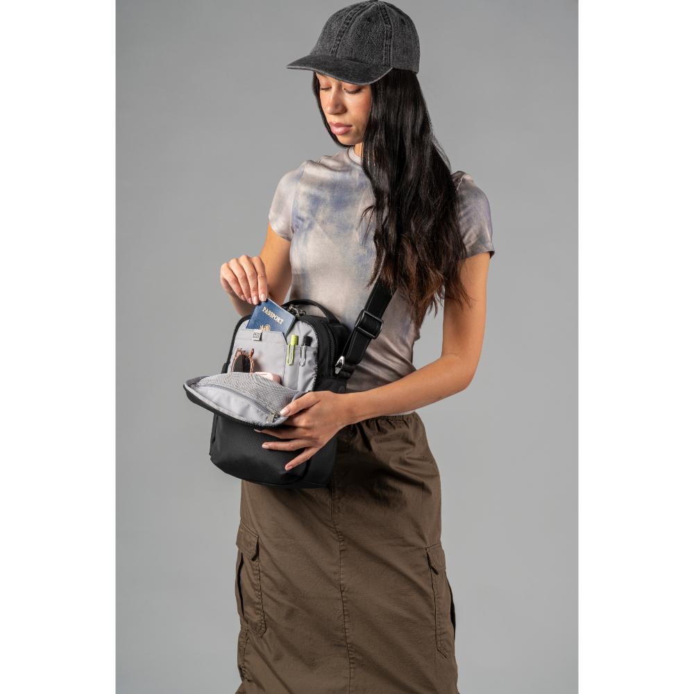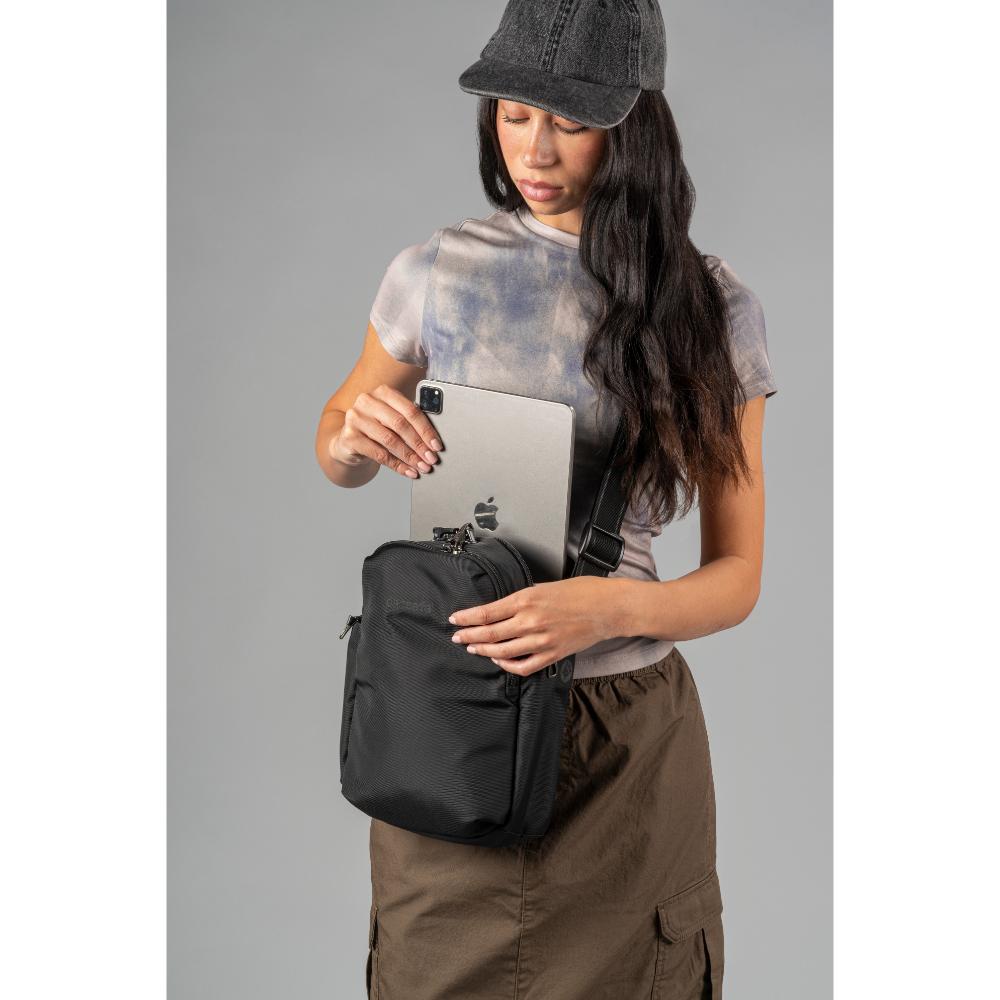 十分な収納スペースを備えた盗難防止を搭載したクロスボディバッグです。世界一周旅行や普段使いなどに最適で、ロック可能な2つのコンパートメントには整理用ポケットが内蔵され、パッド入りの専用スリーブは11インチのタブレットをしっかり収納できます。