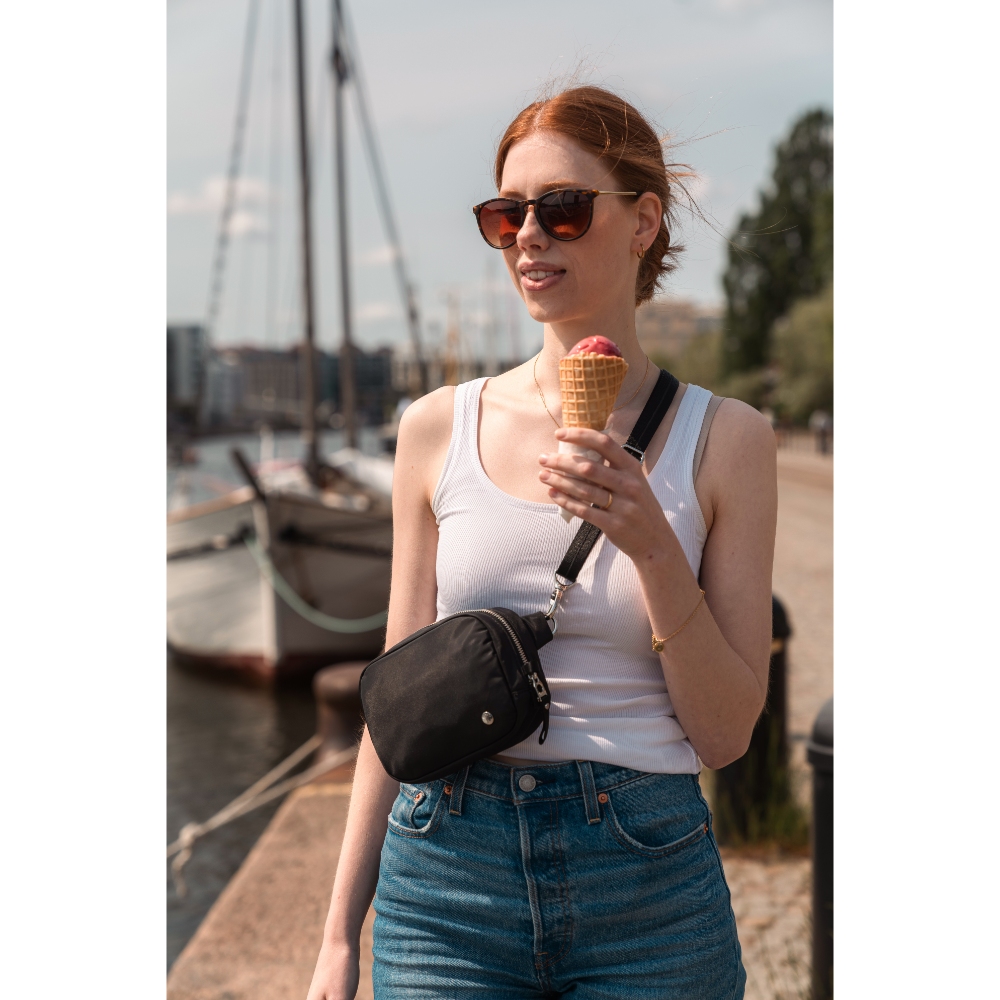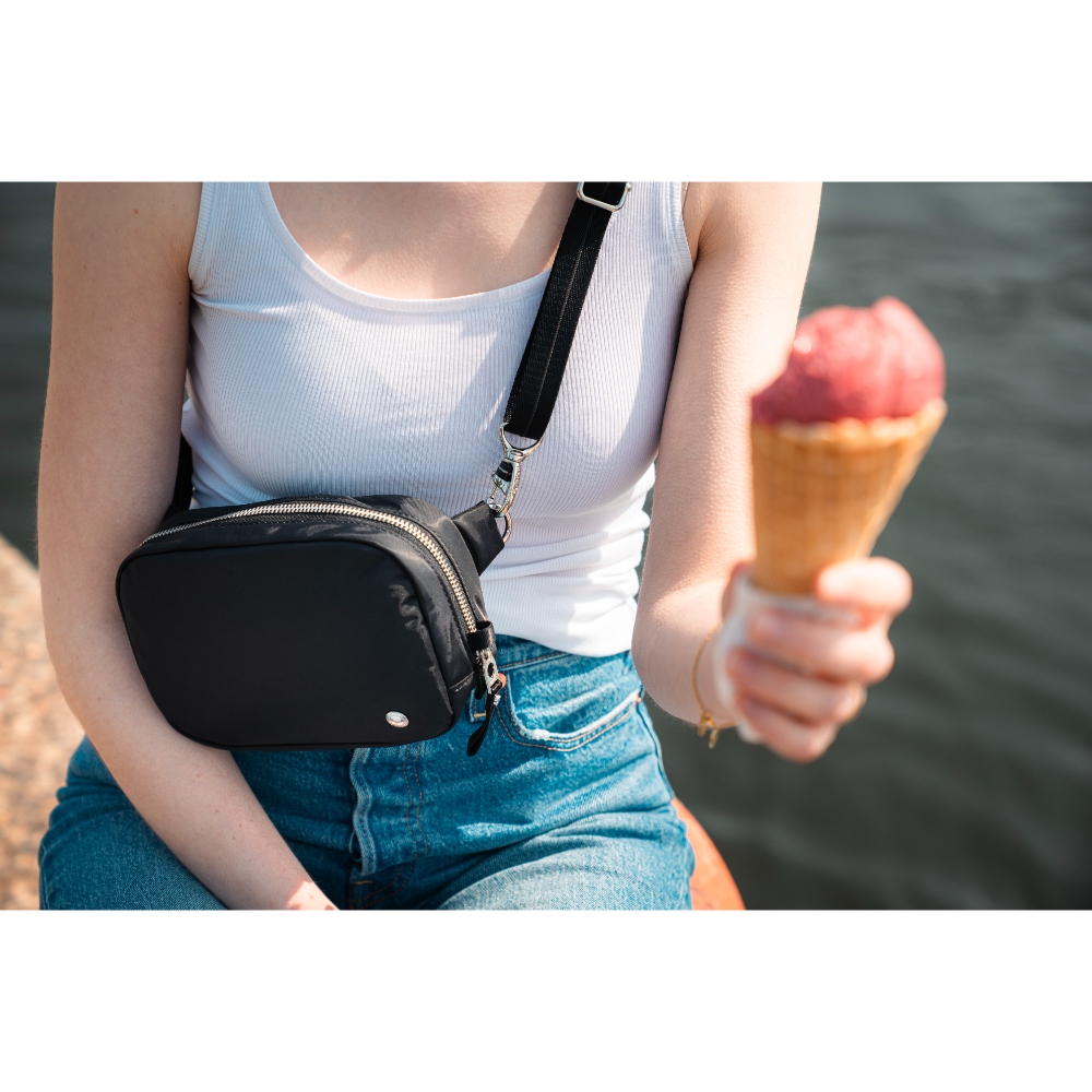 Pacsafe W マイクロスリングは、その洗練されたデザインでどんな服装にもおしゃれにマッチします。