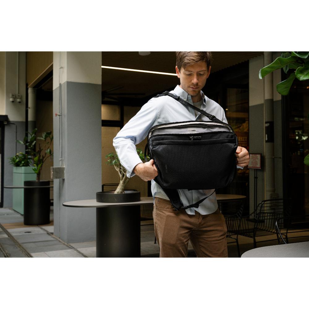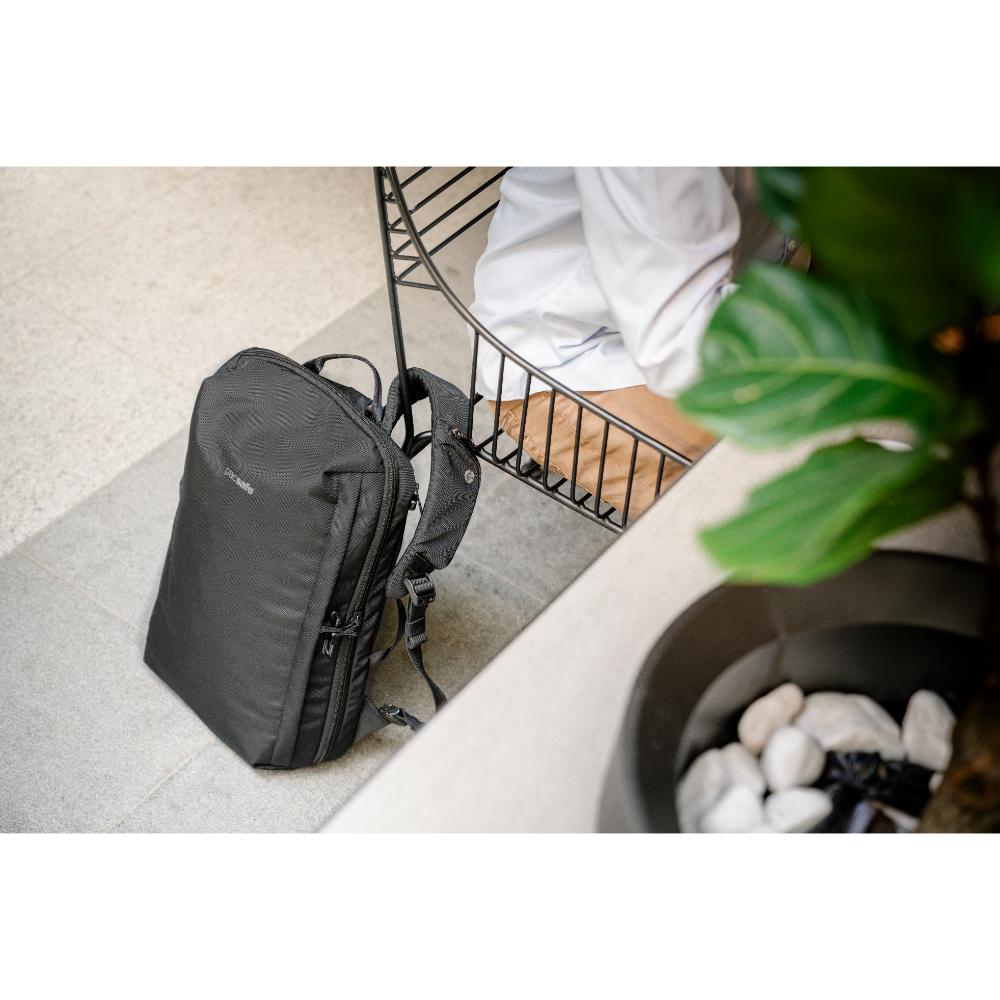 pacsafe パックセーフ V16 コミューターパックは地下鉄や市街地、空港などの混雑した場所でも移動しやすいように、スリムなスタイルのバックパックです。