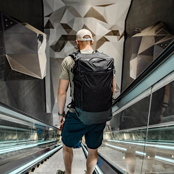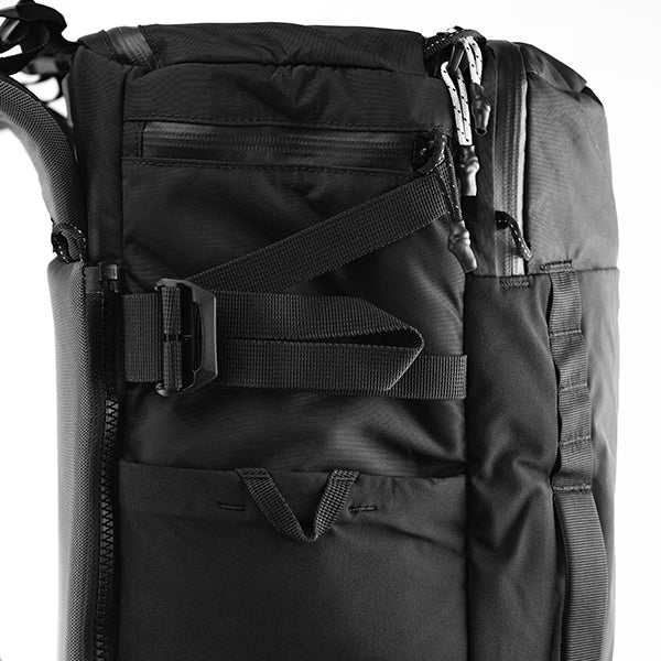 背面パネルとショルダーストラップにはクッションと通気性が備わっており、長時間の使用でも快適さをキープします。さらに、パッド入りのヒップベルトも付いており、負担を分散して快適なフィット感を提供します。不要なときにはヒップベルトとショルダーストラップを収納でき、スマートな外観を保つことができます。多くのポケットがあり、必要なアイテムを簡単に取り出すことができます。外側にはボトルポケットがありますので、飲み物を手軽に持ち歩くことができます。クラムシェル型のデザインは荷物のパッキングやアクセスが簡単です。内部のショックコードで荷物をしっかり固定することができるので安心です。前面にはデイジーチェーンがあり、カラビナなどで小物をぶら下げることもできます。耐久性も重視しており、UHMWPEで補強された耐摩耗パネルが使用されています。また、ブルーサイン?の基準を満たしているため、環境に優しい選択肢です。様々なニーズに対応する機能性、快適さ、セキュリティ機能、整理機能を兼ね備えたバックパックです。