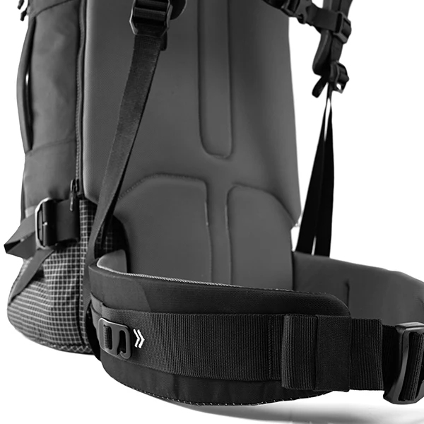 ・パッド入りで通気性が良く収納可能なヒップベルトとショルダーストラップ