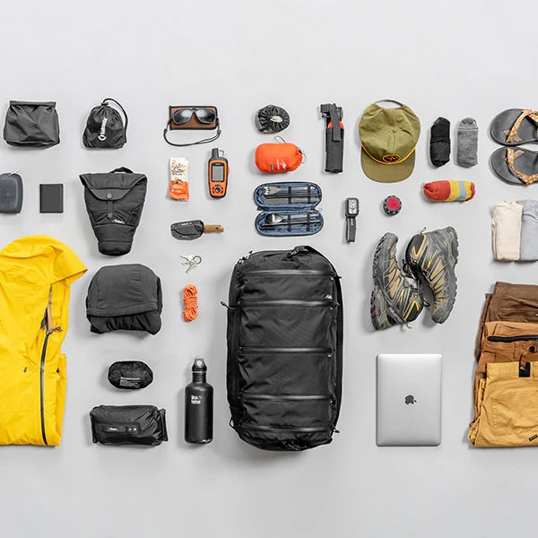 ミニマルなデザインで最大限の整理整頓を実現した、ワンバックで旅行するために開発されたソリューションです。セグメント化されたジッパーポケットから、バッグの全容量にアクセスでき、アイテムを種類別、日別、アクティビティ別に整理できます。大きな荷物や汚れた服は、大型のクラムシェルポケットに収納できます。バック本体はブックオープニングスタイルの大開口で、大きなサイズの荷物の収納が簡単に行えます。外側からアクセスできるパッド入りのラップトップスリーブが背面に、サイドにはウォーターボトルポケットが付いています。トップにはフラットなポケットがあり、ジッパーが長くデザインされているので荷物の出し入れがスムースです。すべてのジッパープルはセキュリティーループに通すことで防犯対策にもなり、リフレクティブウェビング採用で暗い道でも車のライトで反射します。
