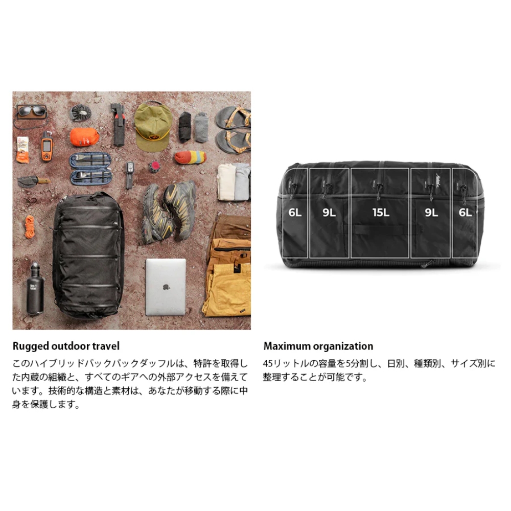 Matador マタドール セグ45 ダッフルパックは、バックパック、ダッフルバック、パッキングキューブを掛け合わせたトラベルパックです。