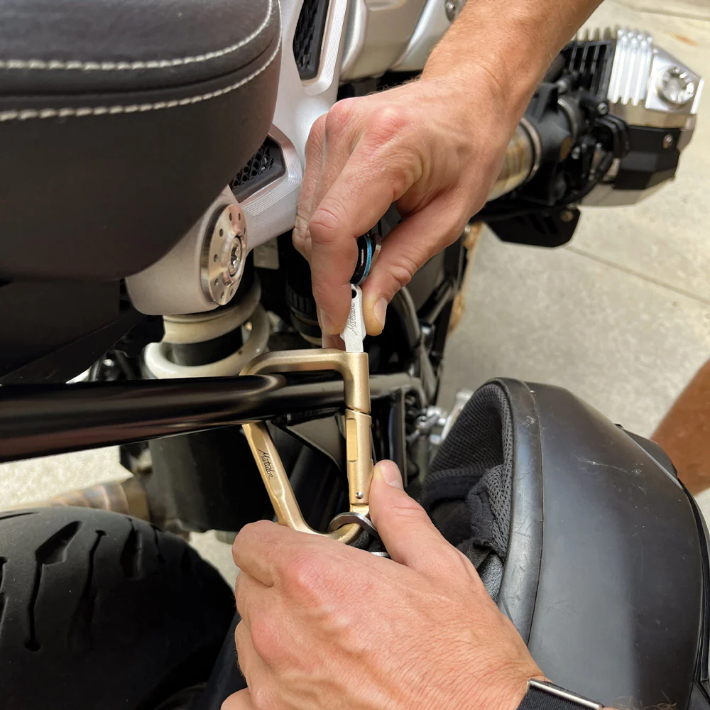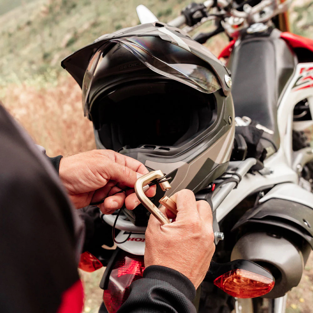 頑丈な日常のカラビナとして機能し、キーを回すだけで盗難防止の錠前に変身します。