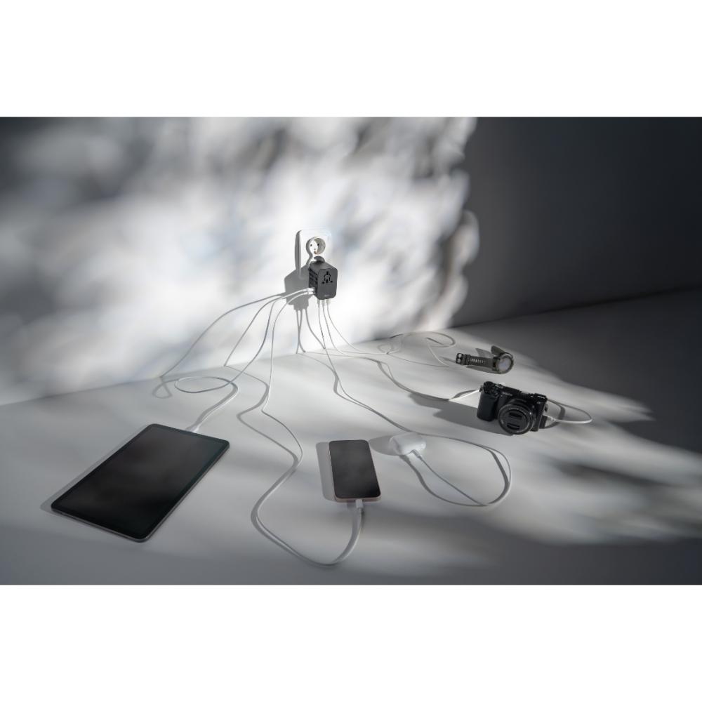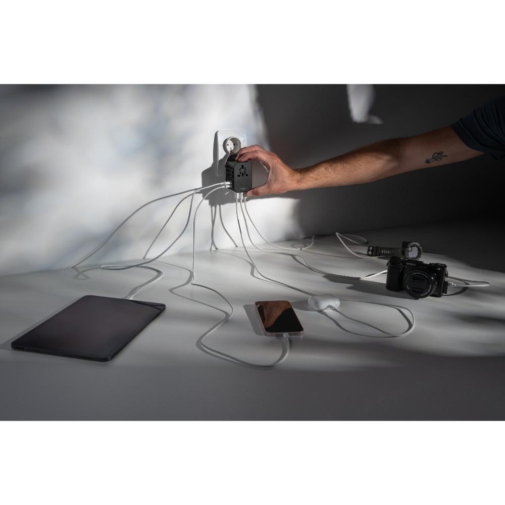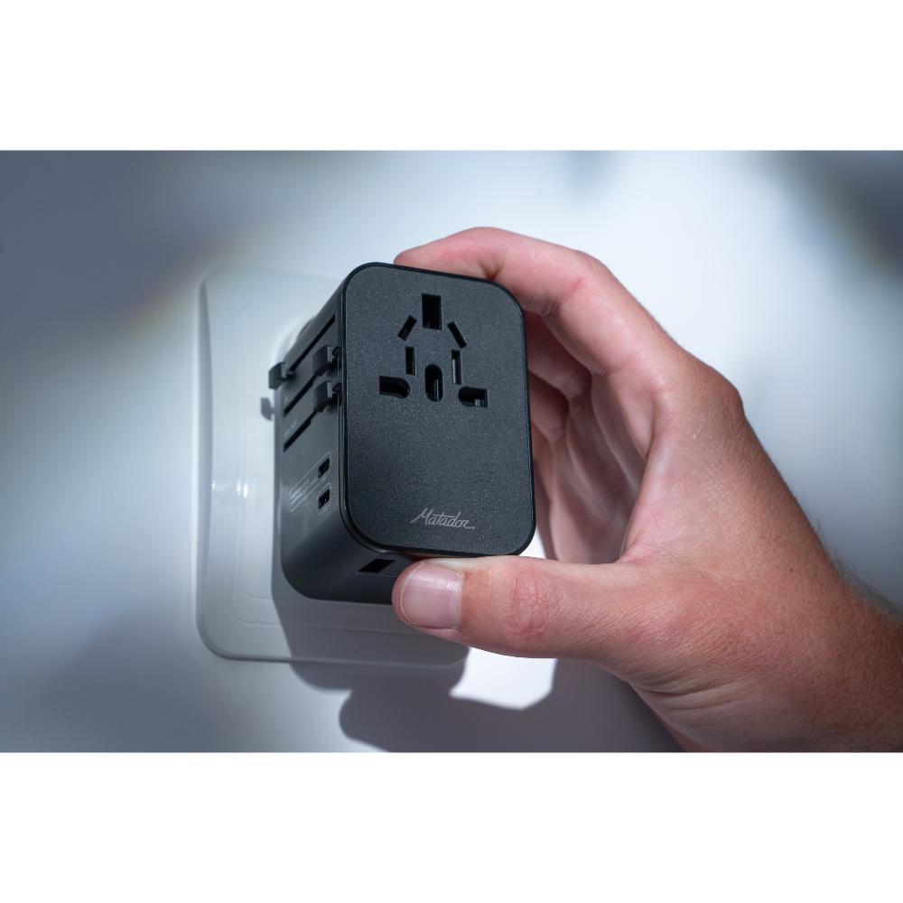 どこへ旅しても充電を可能にします。このコンパクトでスマートな国際用コンセントアダプターは、170か国以上での互換性を提供し、高容量ポートで高速充電や大きなデバイスにも対応できます。また、同時に6つのデバイスを充電することが可能です。