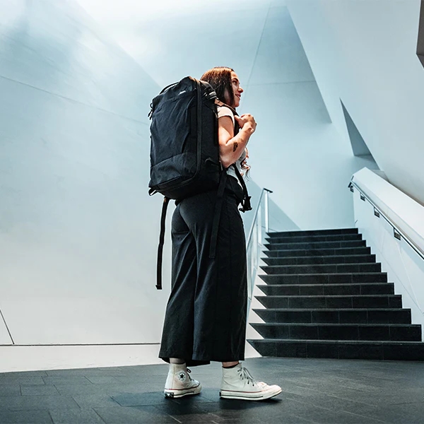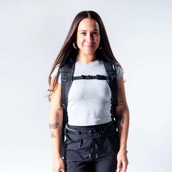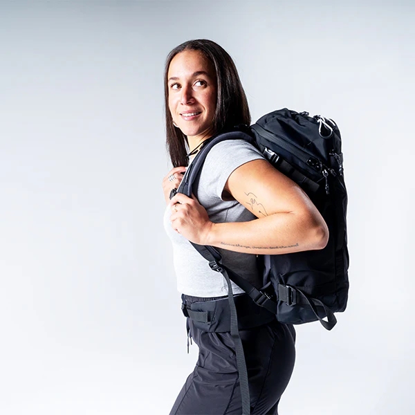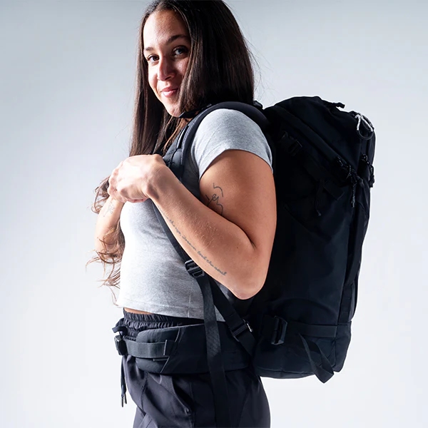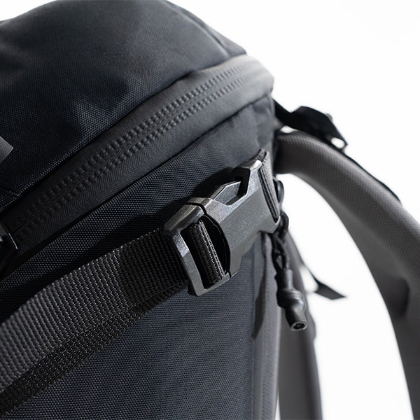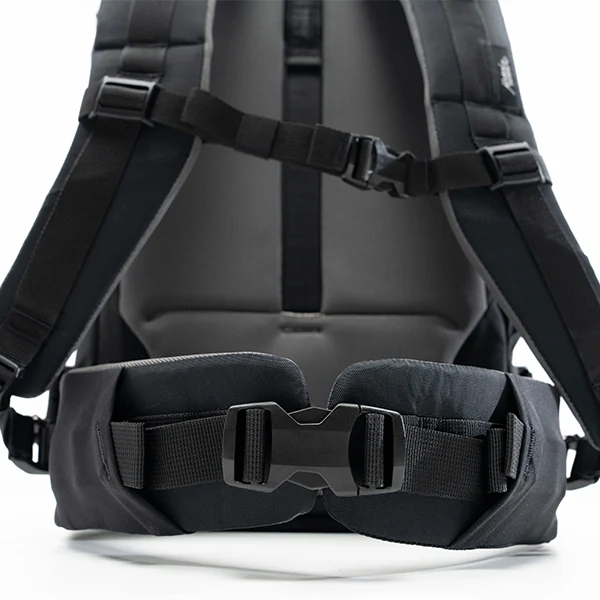 素材には、ブルーサイン(R)基準を満たした耐久性のあるリサイクル素材を使用し、信頼できる耐候性を実現。シーリングジッパーと強化された構造により、大切なギアを雨風や埃からしっかりと守ります。また、クッション性に優れた背面デザインを採用し、長時間の移動でも疲れにくい設計。このバッグは、フルインターナルフレームとアルミフレームステーを備え、荷物の重さを適切に分散することで、安定した背負い心地。ヒップベルトは取り外し可能で、簡単に収納することが可能。さらに、バックパネル内には隠しポケットがあり、貴重品を安全に保管。ジッパーにはセキュリティループが施されており、不意のスリ被害を防ぐ安心設計。