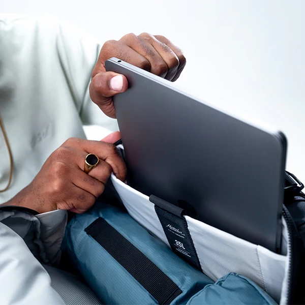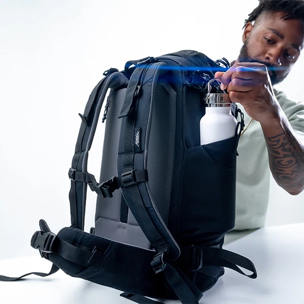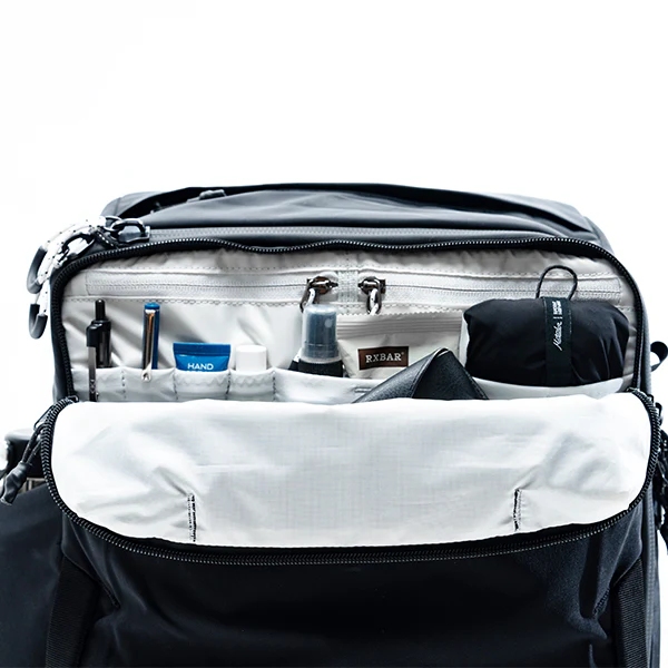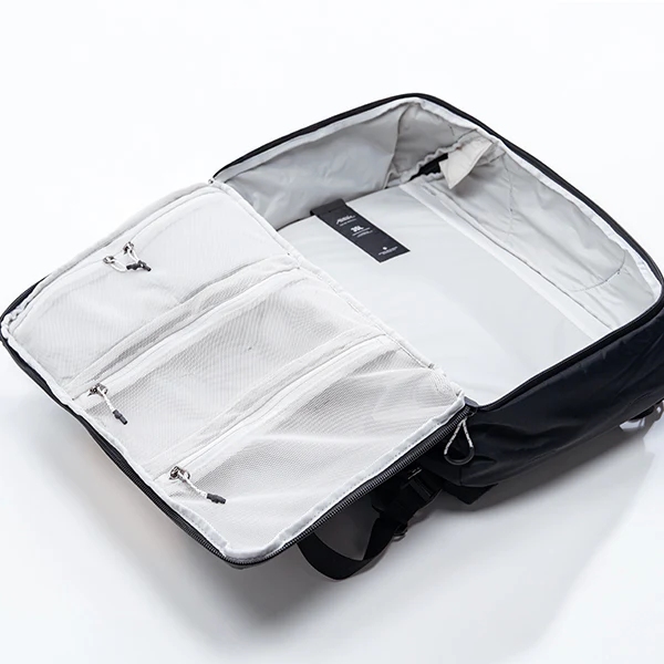 このバックパックは、大きく開くクラムシェルデザインを採用し、荷物の視認性を高めながらスムーズなパッキングが可能。さらに、バッグを寝かせることなくメインコンパートメントへフルアクセスができます。アクセサリーポケットには傷を防ぐ保護ライナーが施され、フルパッド仕様のラップトップスリーブを搭載。