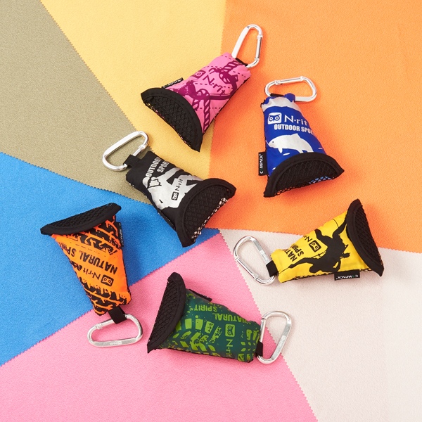 収納ポーチはキーカラビナ付きで携行に便利です。