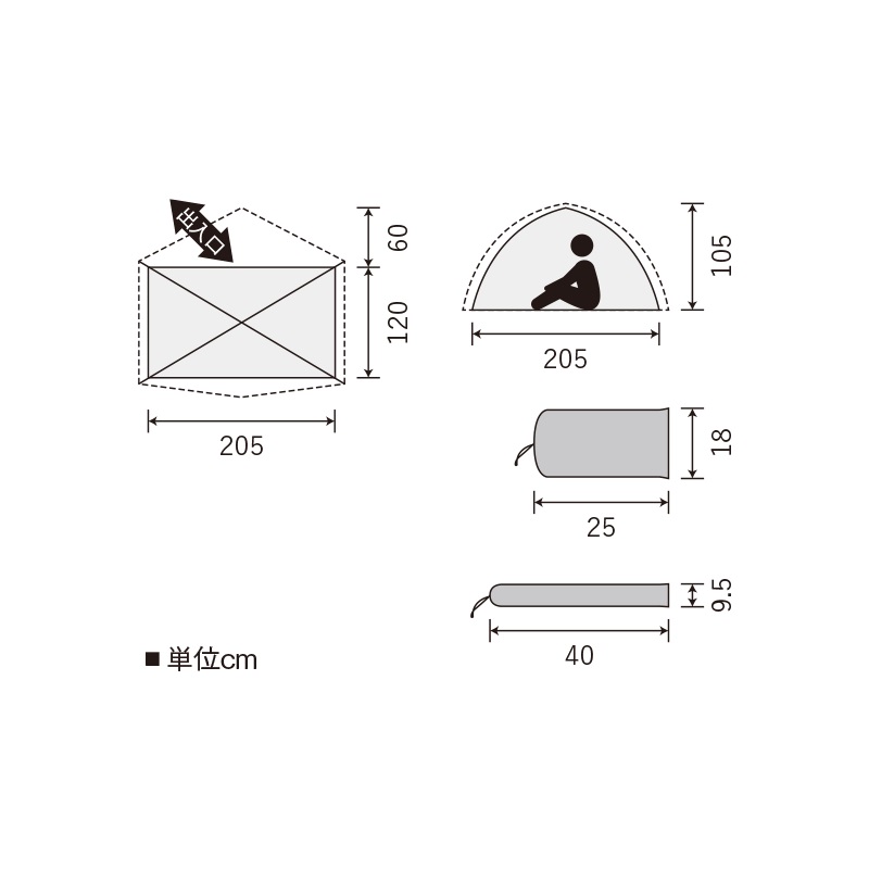 ■収納サイズ:本体/25×Φ18cm、ポール/40×9.5cm