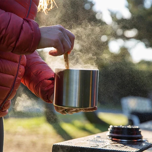 二重構造の真空断熱ステンレス構造により、中身の保温保冷ができます。熱いスープと冷たいアイスクリームを外出先のどこでも楽しめます。