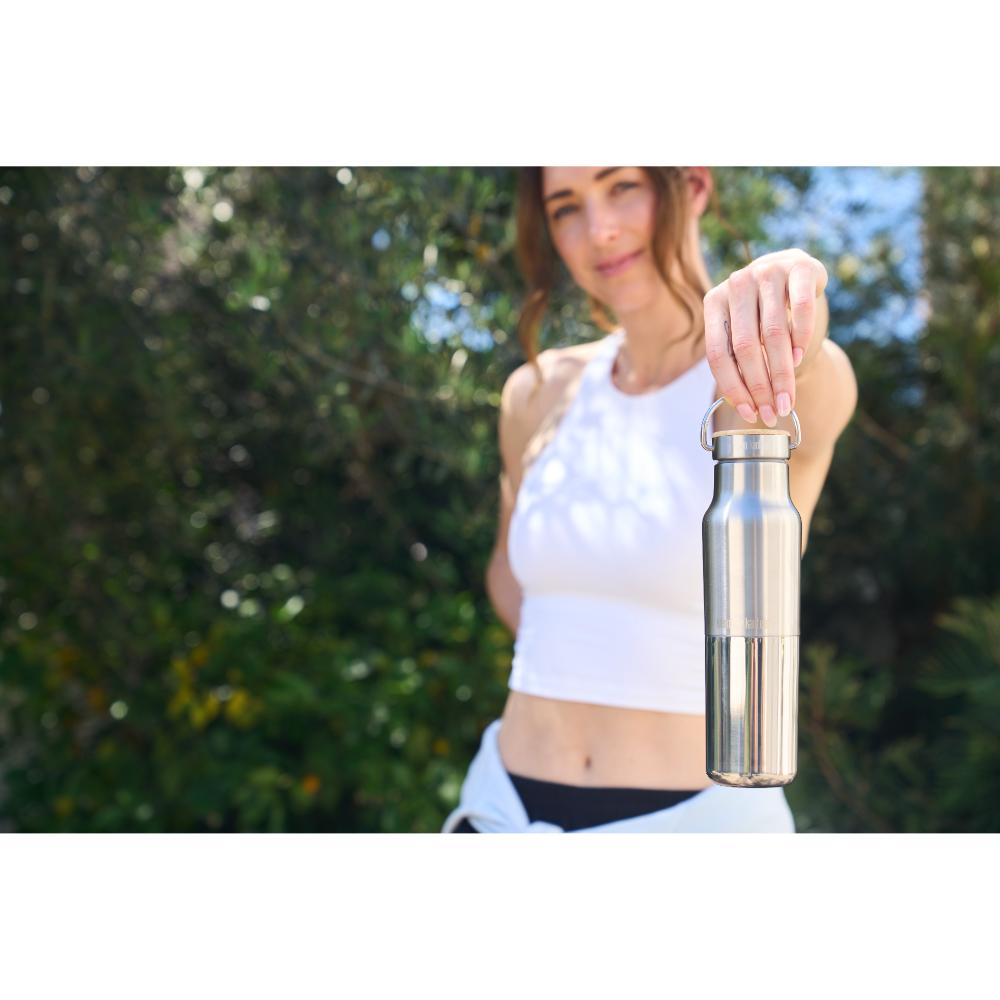 90%使用済み再生ステンレススチール(認証取得済み)、持続可能な方法で収穫された竹、そして食品グレードのシリコンという、たった3つの素材だけで作られたこのボトルは、まさにピュアそのものです。