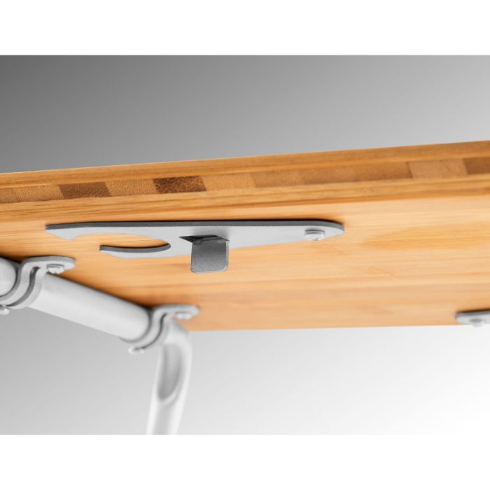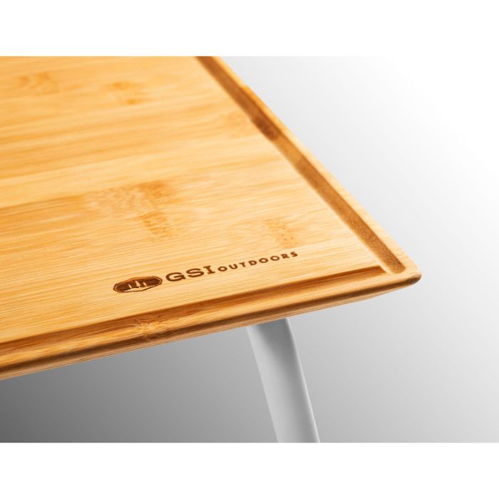 折りたたみ式の脚と便利なワイングラスホルダーが付いたコンパクトなピクニックテーブルです。ラカウカッティングボードと同じ竹素材の天板には溝が掘られており、食材の汁気が流れおちづらい工夫が施されています。