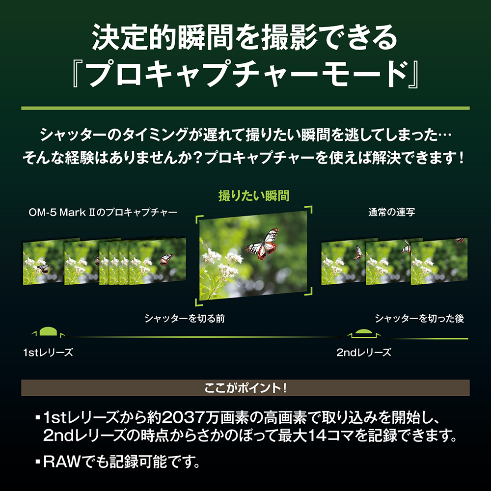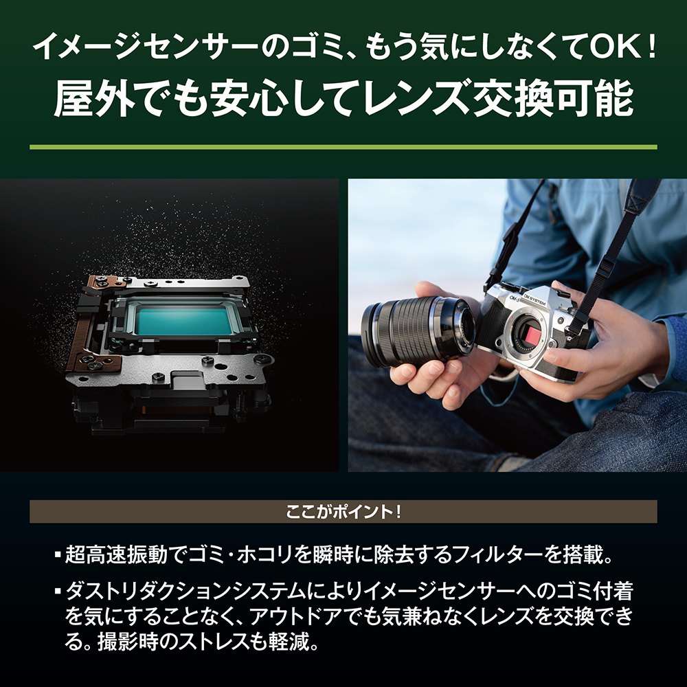- 小型軽量の機動力。防塵・防滴のタフネス。一期一会の感動を思いのままに描写するレンズシステム。「OM-5 Mark II」