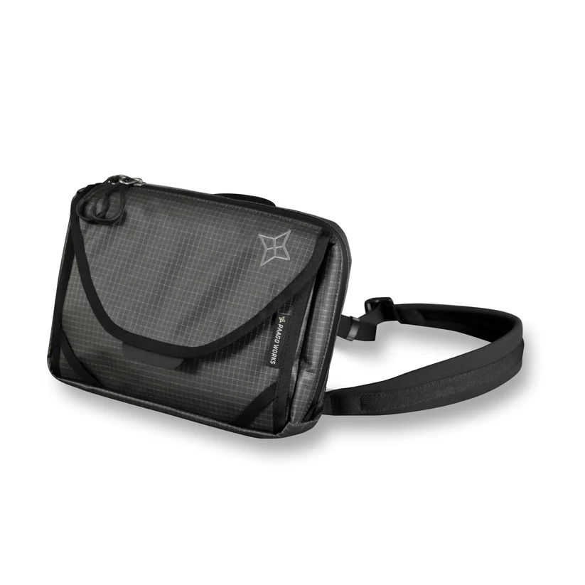 付属のベルトでショルダーバッグとして単体使用も可能。テント場や山小屋でも貴重品を身につけておけます。