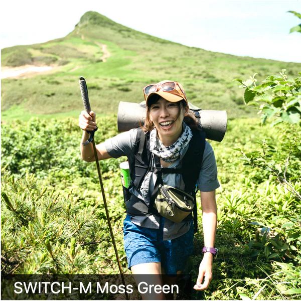 SWITCHの背面スリットにザックのウエストベルトを通して、サイドポケットとして使う事もできます。