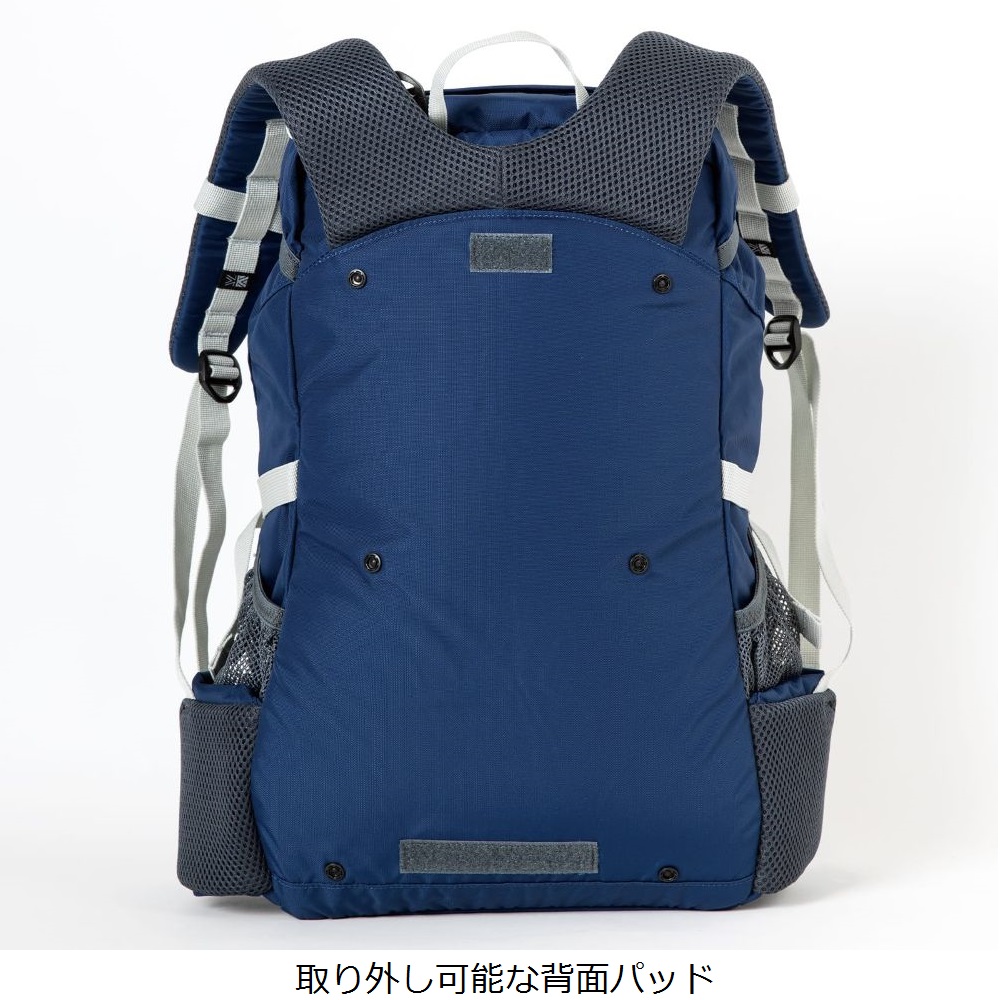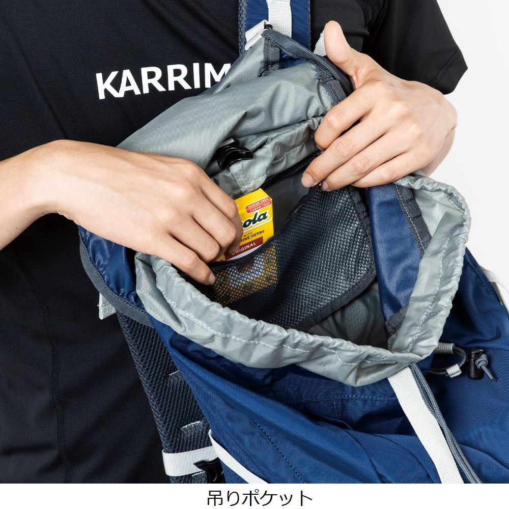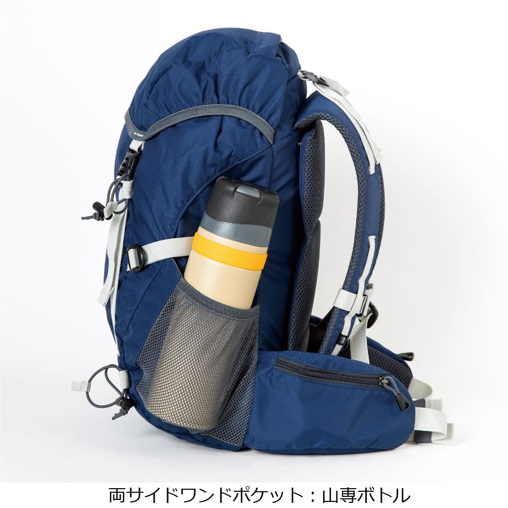パッド入りりヒップベルトにポケットを装備、大き目のワンドポケット、フロントポケットなどトレッキング用で活躍する機能を多数装備した機能充実の小型トップローダー。